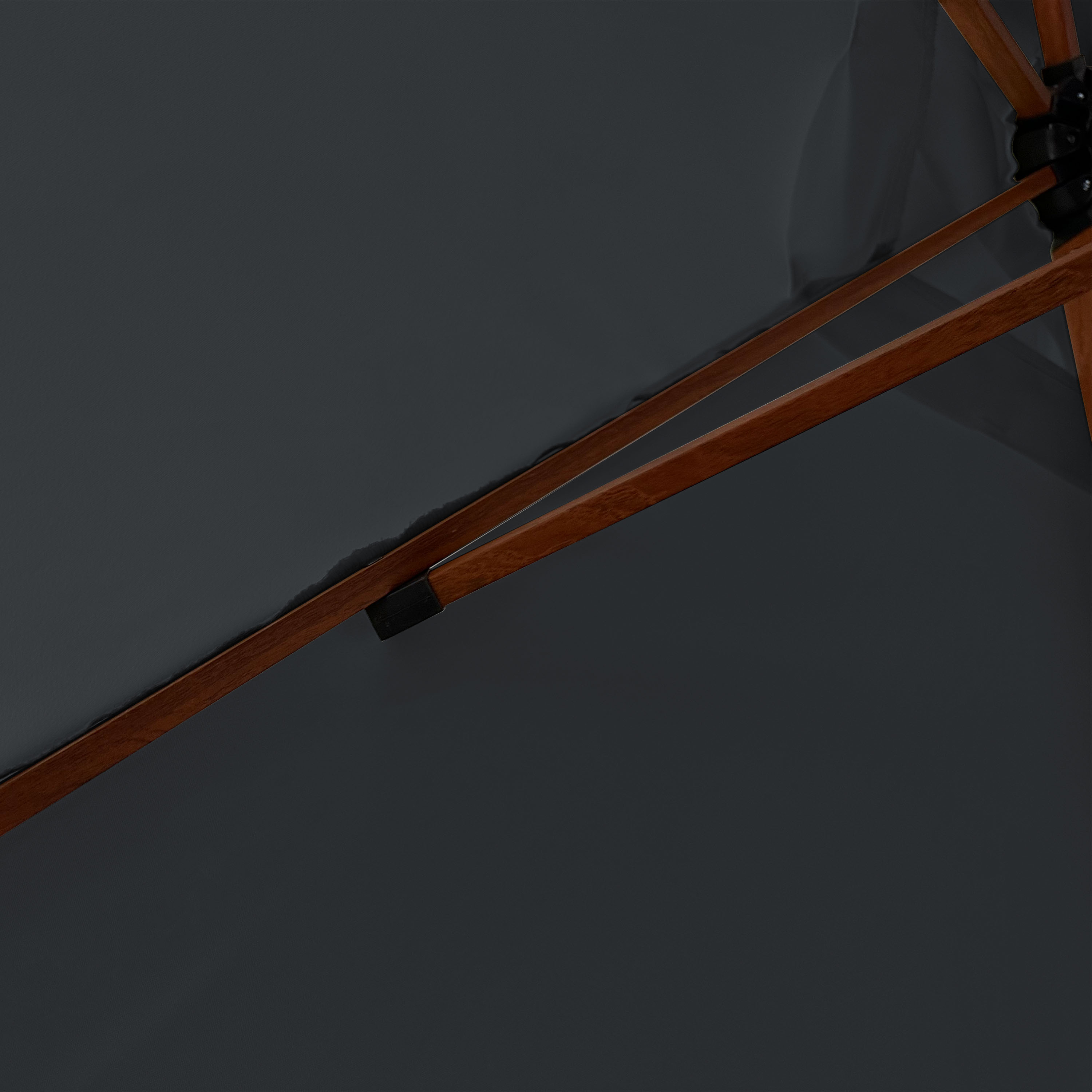 Het 180 grams polyester doek biedt een fijne schaduw en is geschikt voor dagelijks gebruik buitenshuis. Met een UPF-waarde van 30+ beschermt het doek tegen schadelijke UV-straling, zodat je zorgeloos kunt genieten van de zon. De windvanger in de top zorgt ervoor dat wind beter wordt afgevoerd, wat de stabiliteit van de parasol ten goede komt.