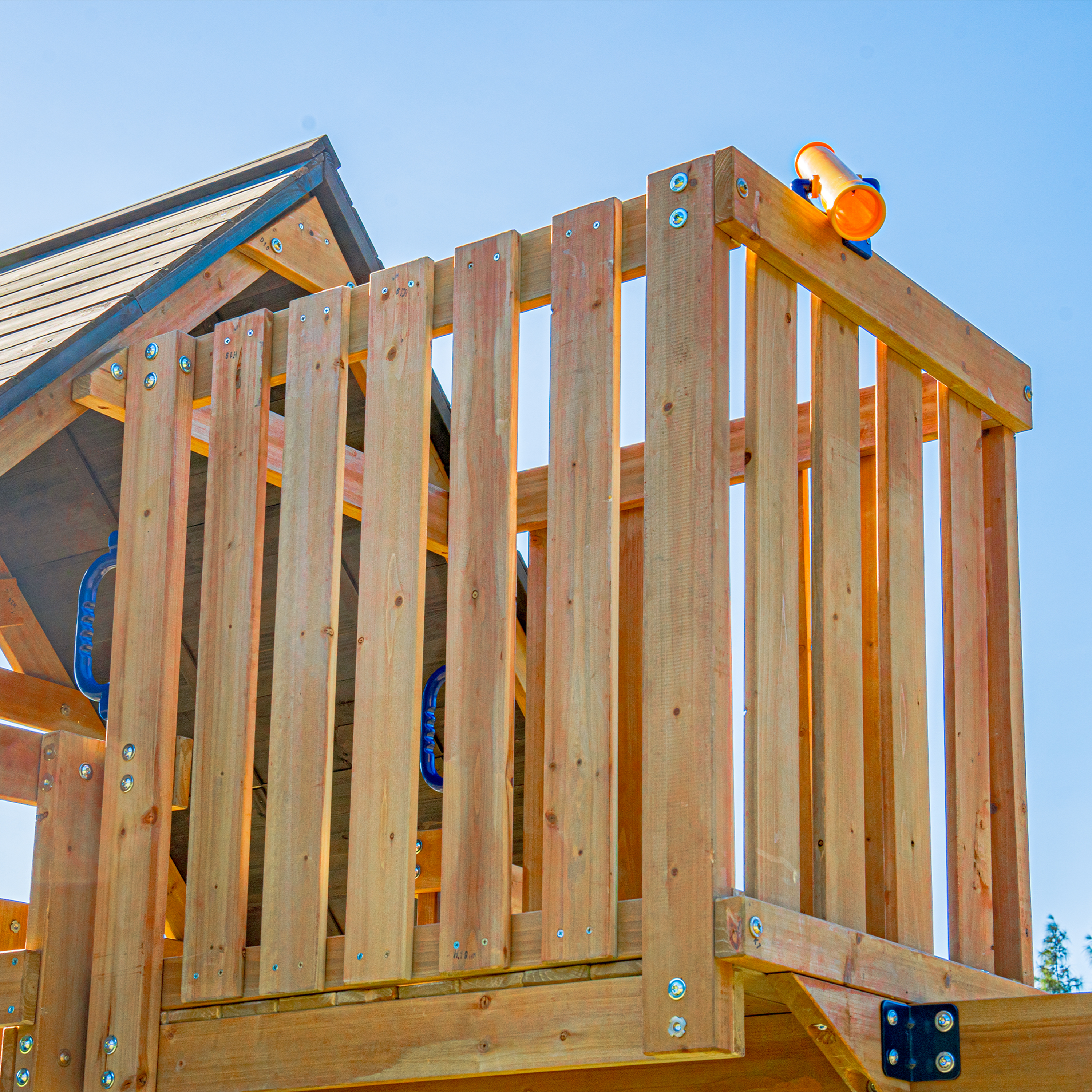- Het overdekte speelplatform biedt extra speelmogelijkheden, waaronder een uitkijktoren en een telescoop.
