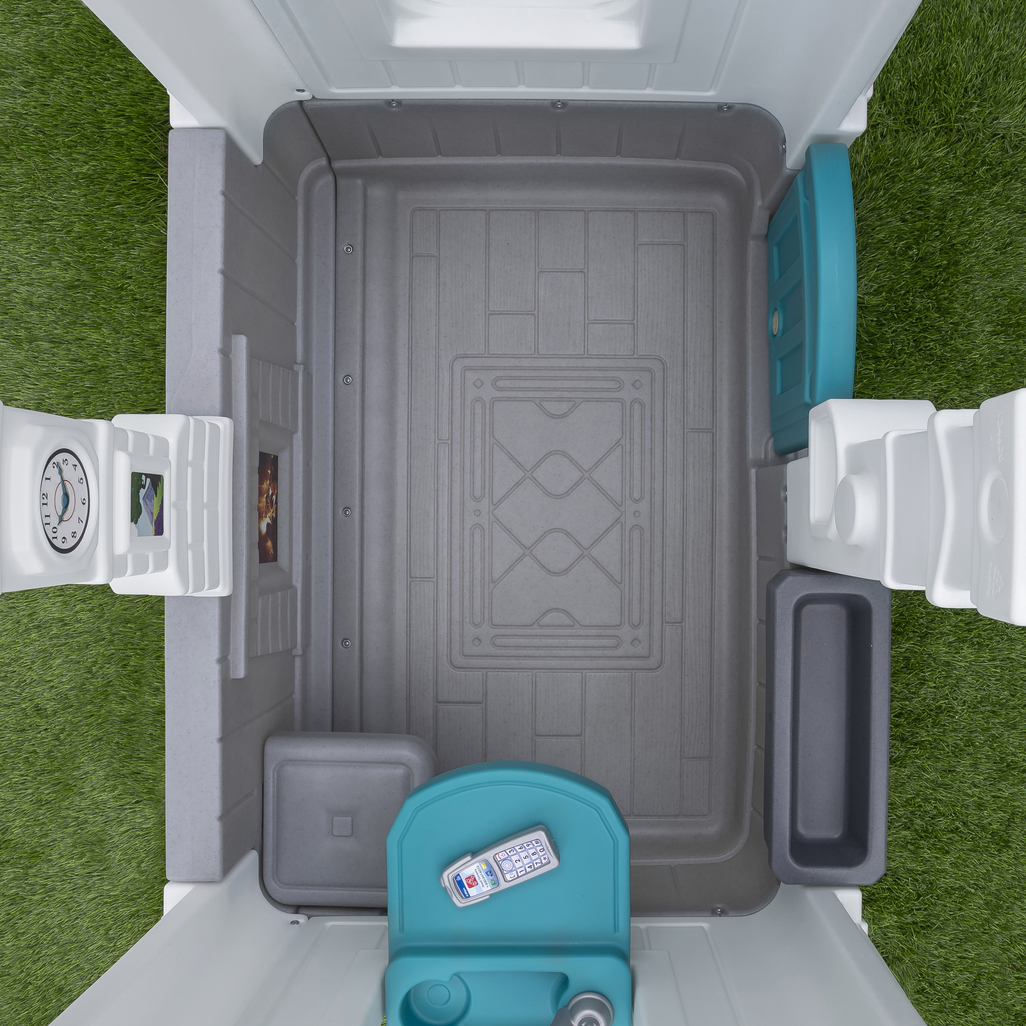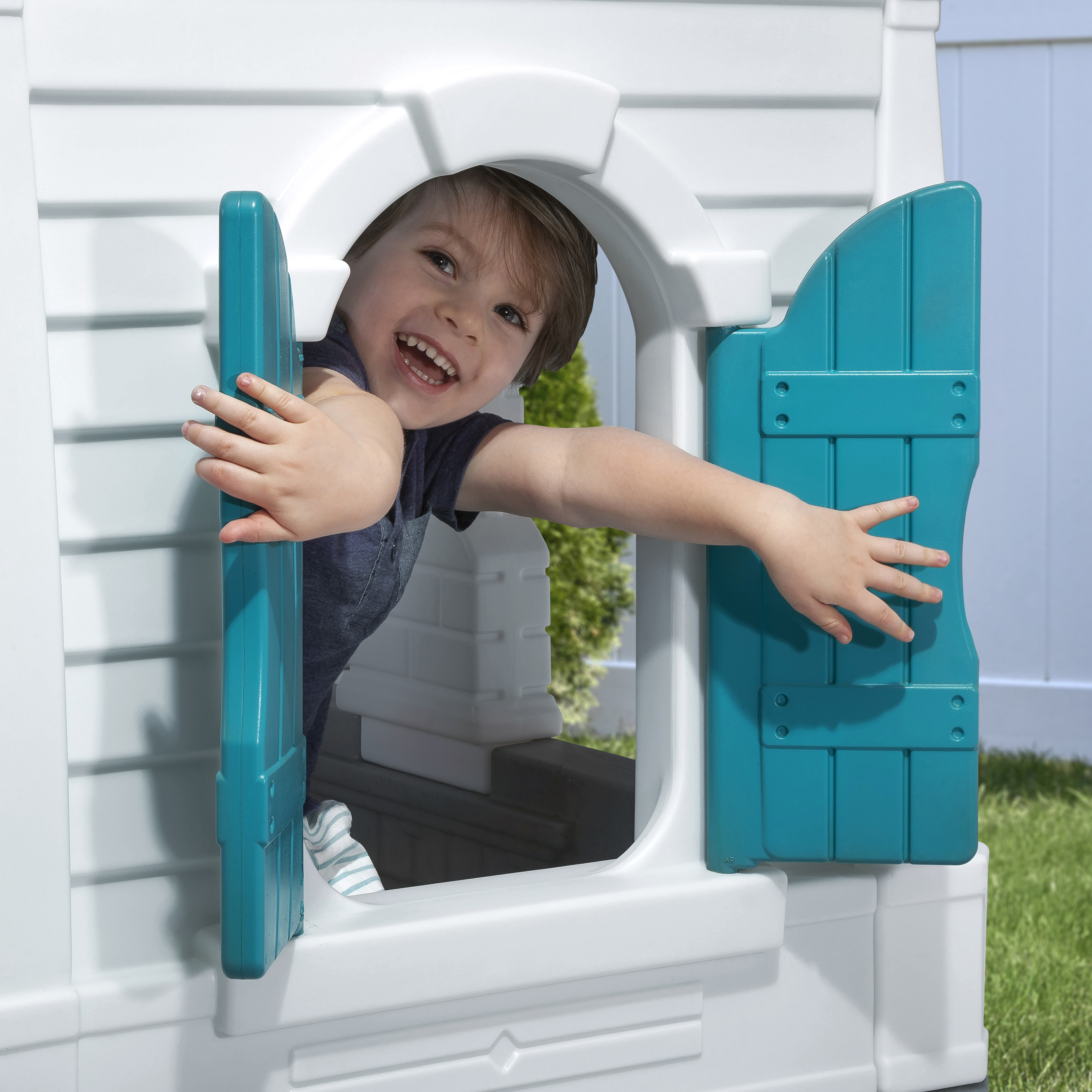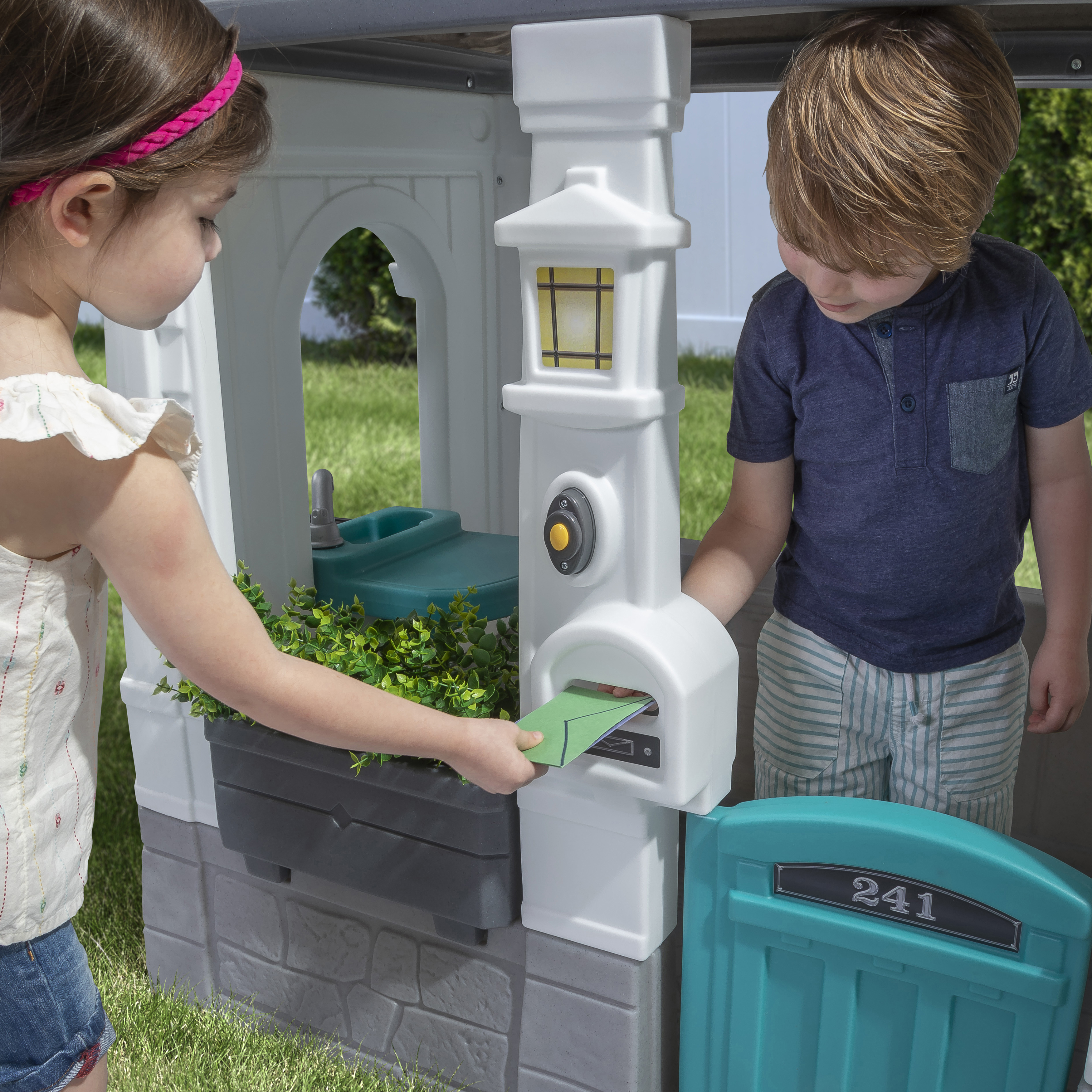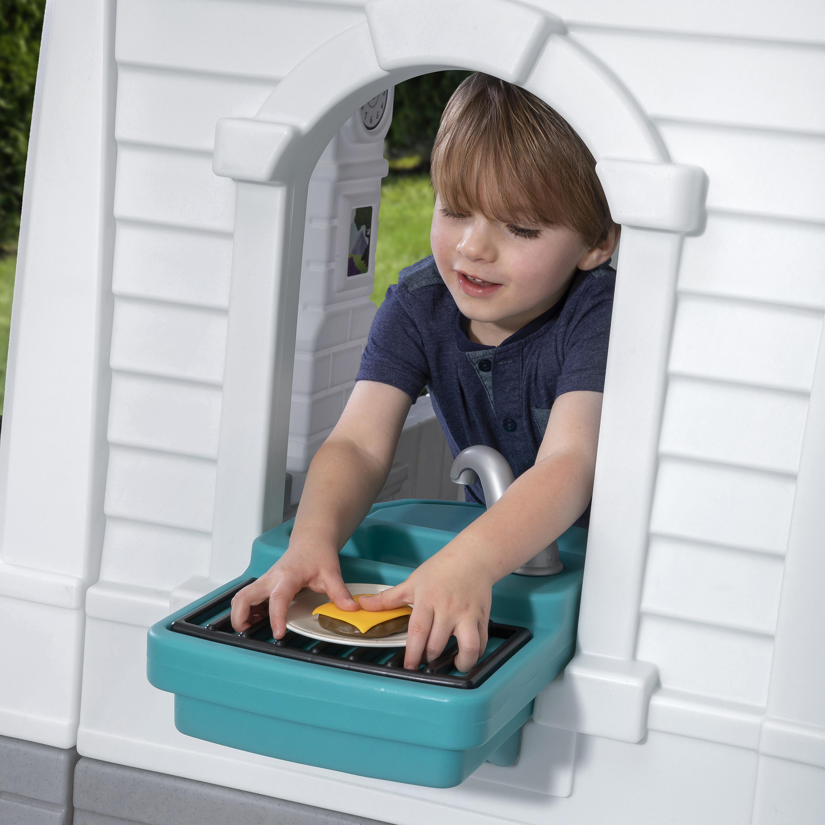 Het Neat and Tidy Cottage Homestyle Edition speelhuisje van Step2 nodigt ouders uit om mee te komen spelen met hun kids! Het open ontwerp met open ramen en een boerendeur zorgt voor veel speelplezier voor iedereen die wil meespelen. Het speelhuisje biedt ruimte voor meerdere kinderen om te spelen of om aan de ingegoten keukentafel te zitten voor een lekkere “maaltijd”. Kook om de beurt op de ingegoten grill en doe daarna de afwas in de gootsteen - vergeet ook niet om de planten water te geven! Van de luiken tot de echt werkende elektronische deurbel en de doorgeef brievenbus, dit speelhuis biedt veel mogelijkheden voor een spel gevuld met fantasie! Bovendien is de ingegoten vloer eenvoudig schoon te maken, waardoor kinderen net iets netter buiten kunnen spelen. Ideaal!
