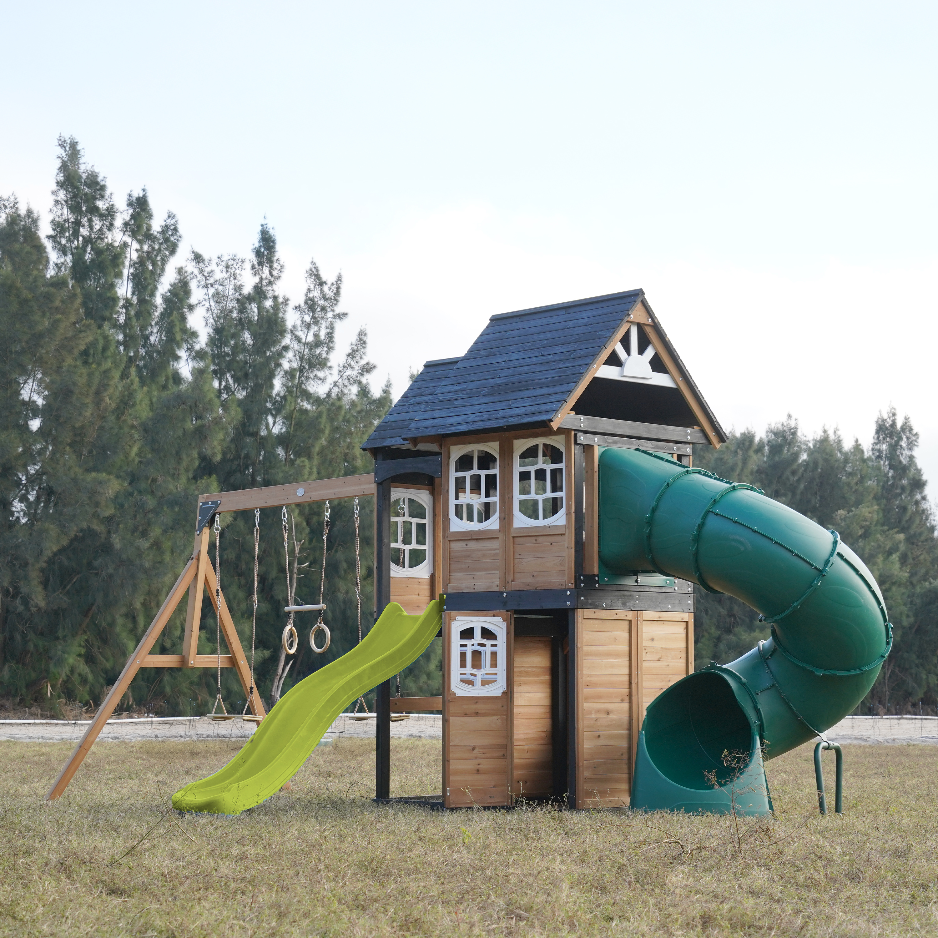 Productinformatie "Noud Speeltoestel – Limoen Groene Glijbaan en Buisglijbaan"