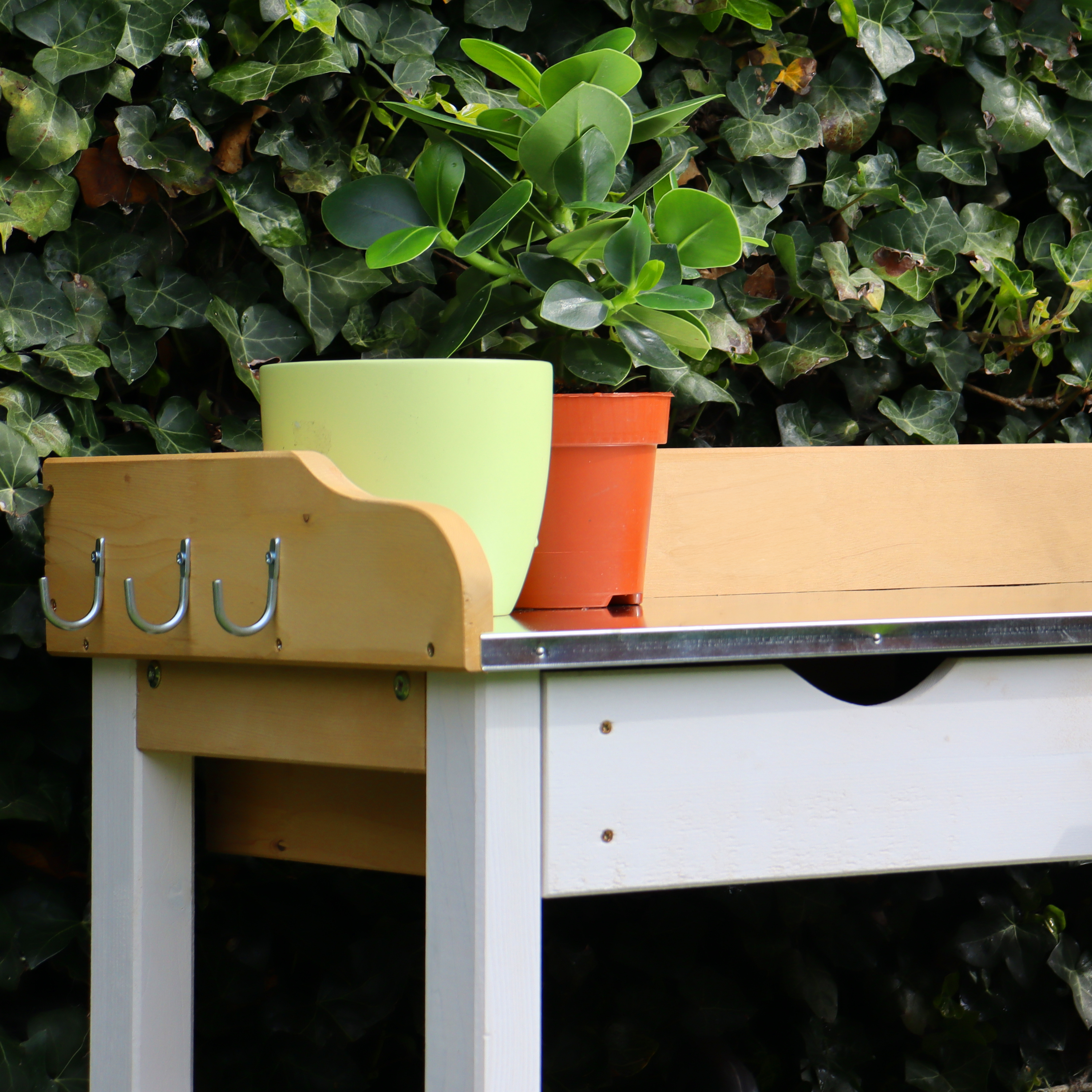 - Opbergplank om planten, tuinaarde en potjes op te slaan.