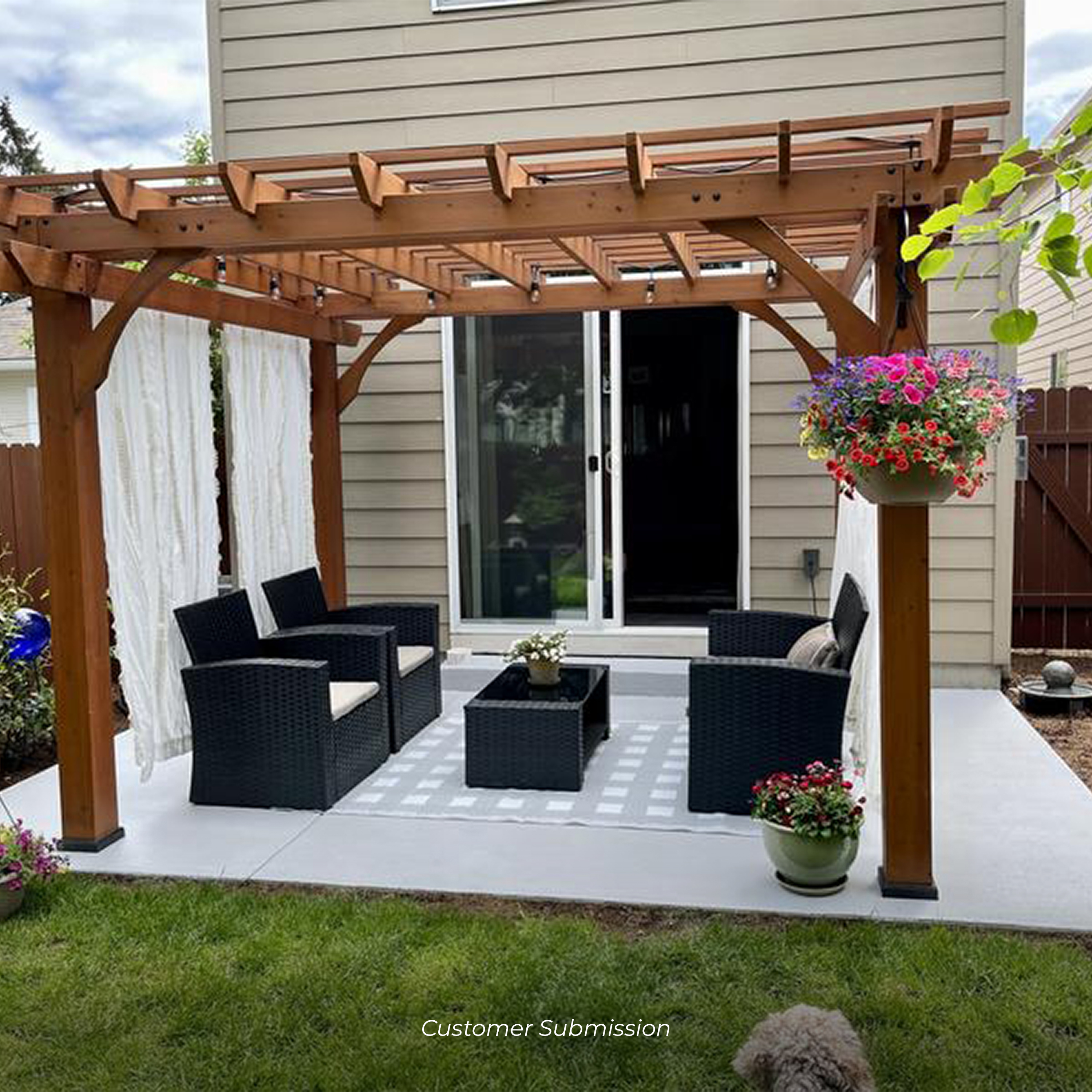 De pergola is gemaakt van 100% cederhout voor een volledig cederhouten constructie. Met een kleine, strakke knoeststructuur zal je hout minder snel kleine scheurtjes krijgen die afkomstig zijn van knoesten. Onze duurzame, stevige constructie van cederhout heeft bewezen rotbestendig te zijn en is bestand tegen natuurlijk verval. Ons hout wordt vooraf gebeitst geleverd voor een glad en helder uiterlijk. Ons cederhout wordt professioneel gezaagd en gestempeld geleverd met de onderdeelnummers om gemakkelijk te helpen bij het bouwproces. Om te helpen bij het in elkaar zetten van je pergola kan het nodig zijn om kleine proefgaten te boren. Onze Safe-T-Fuse hardware maakt de montage eenvoudig en veilig.
