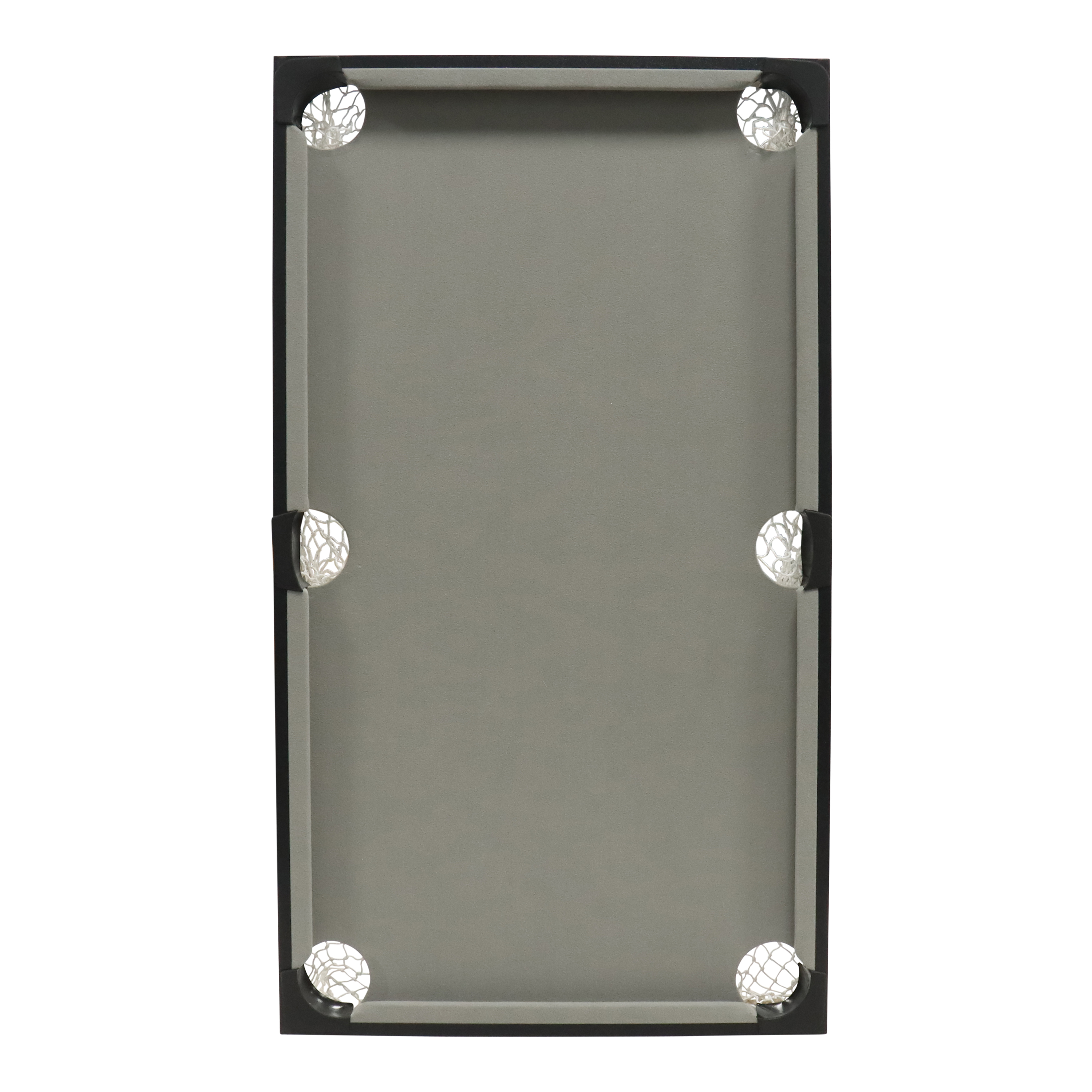Ondanks het compacte formaat voelt spelen op deze tafel goed aan. Het speelveld is 5,8 mm dik en bekleed met een strak grijs velvet laken, waardoor de ballen soepel en snel rollen. Met een speelveld afmeting van 85,5 x 44,5 cm heb je genoeg ruimte voor spannende potjes, maar past de tafel ook makkelijk in kleinere ruimtes.