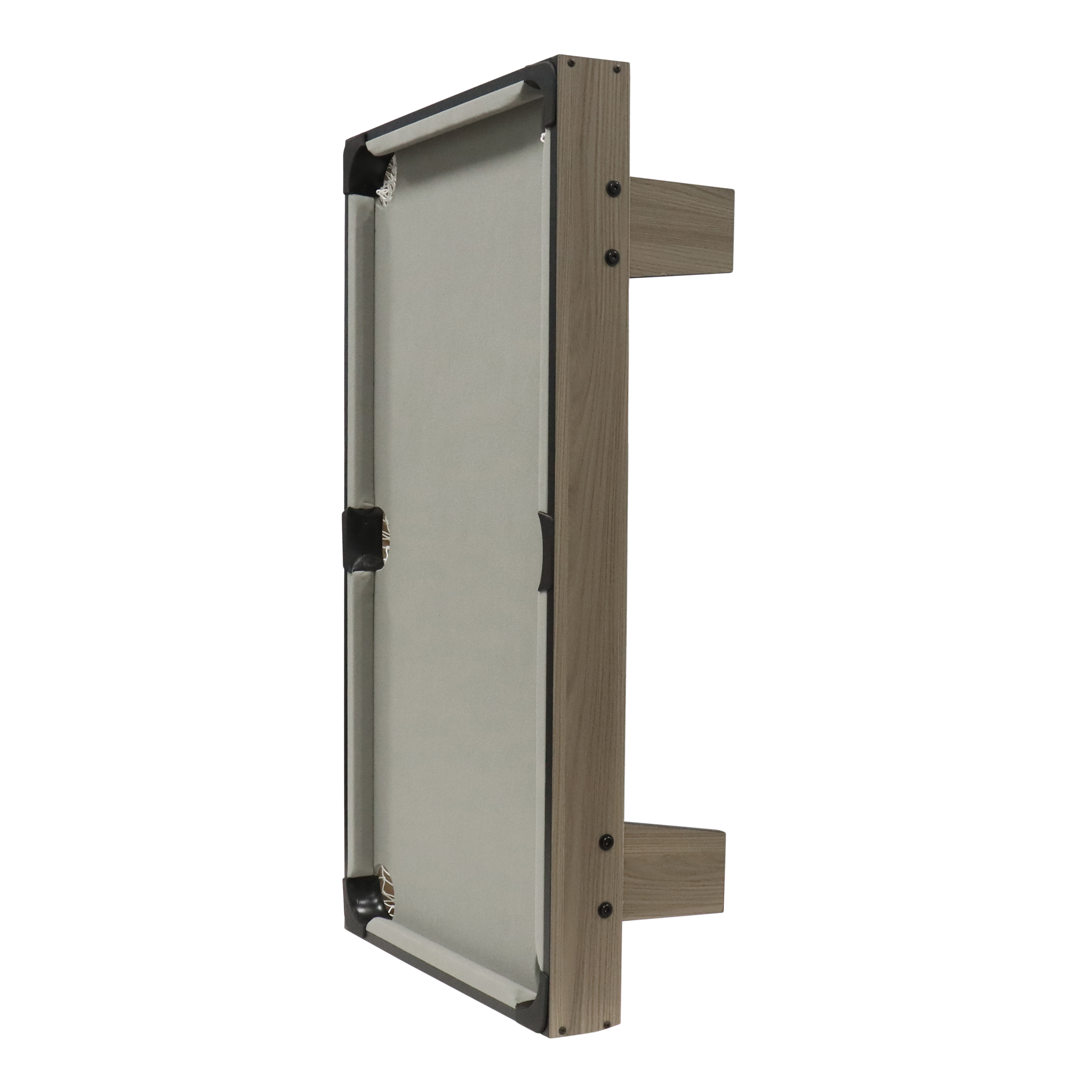 Met zijn eiken/ grijze look past deze pooltafel in vrijwel elk interieur. Hij is stevig genoeg voor dagelijks gebruik en weegt maar 9 kilo, waardoor je hem gemakkelijk kunt verplaatsen als dat nodig is. En alsof dat nog niet genoeg is, krijg je er standaard 2 jaar garantie bij.