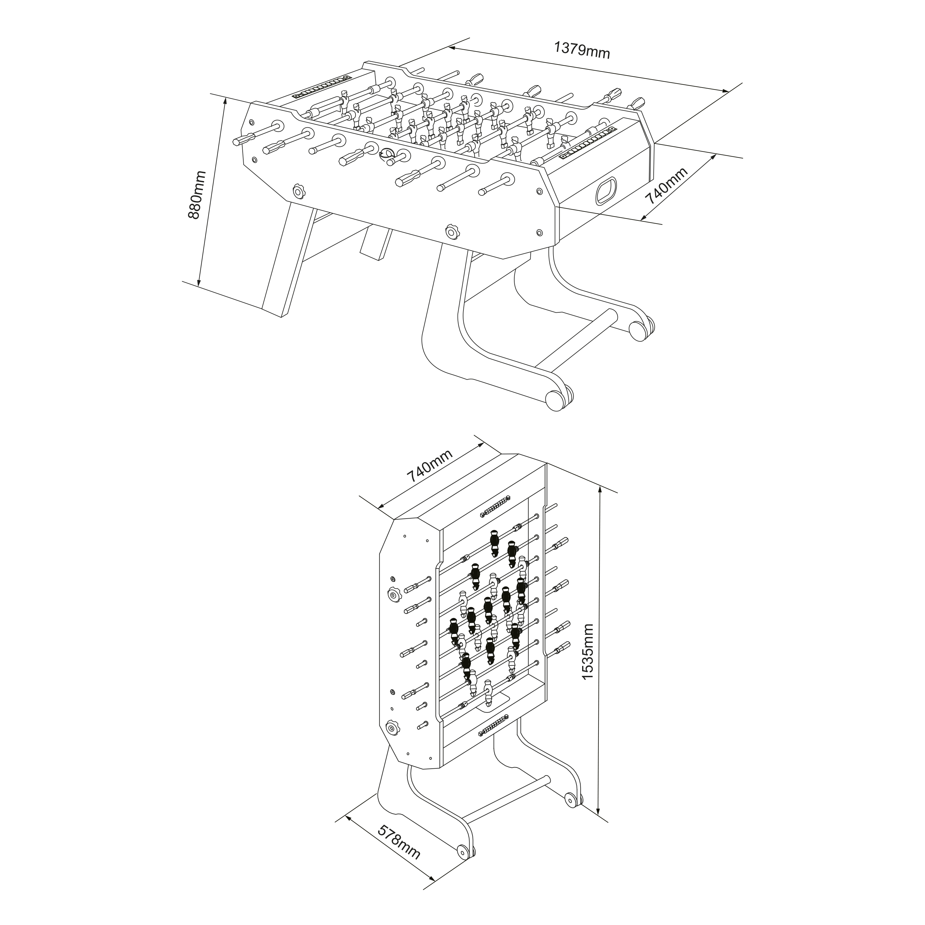 De Powerkick Pro is robuust uitgevoerd, maar dankzij het slimme inklapsysteem zet je 'm na gebruik gewoon opzij. Ideaal voor wie graag speelt, maar ook ruimte wil besparen. Het speelveld is 9 mm dik en opgebouwd uit MDF met een melamine toplaag – goed voor extra krasbestendigheid én langdurig speelplezier.