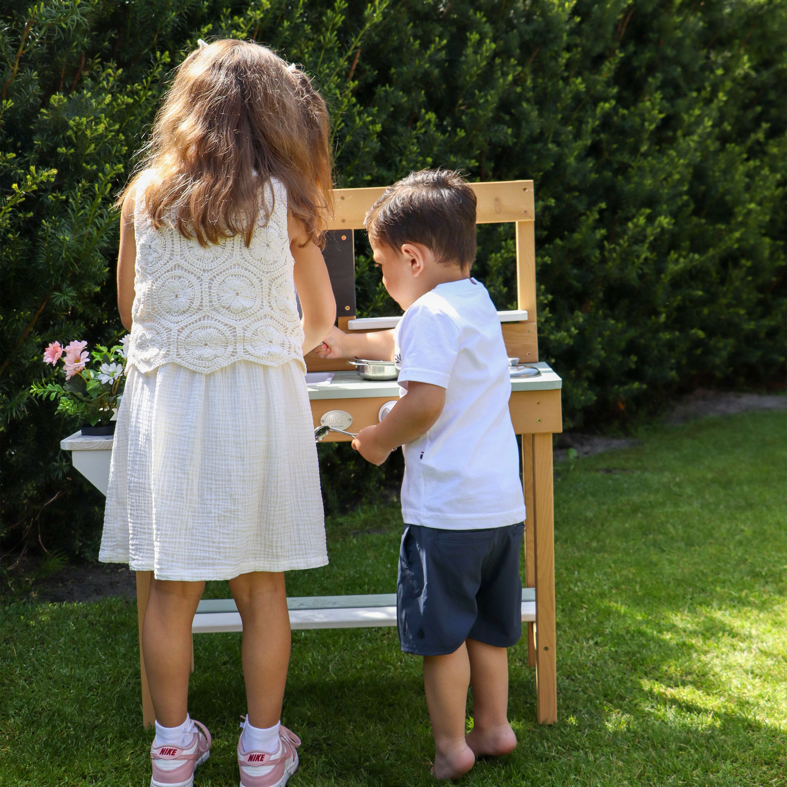 - Multifunctionele speelkeuken die in een handomdraai als Modderkeuken gebruikt kan worden.