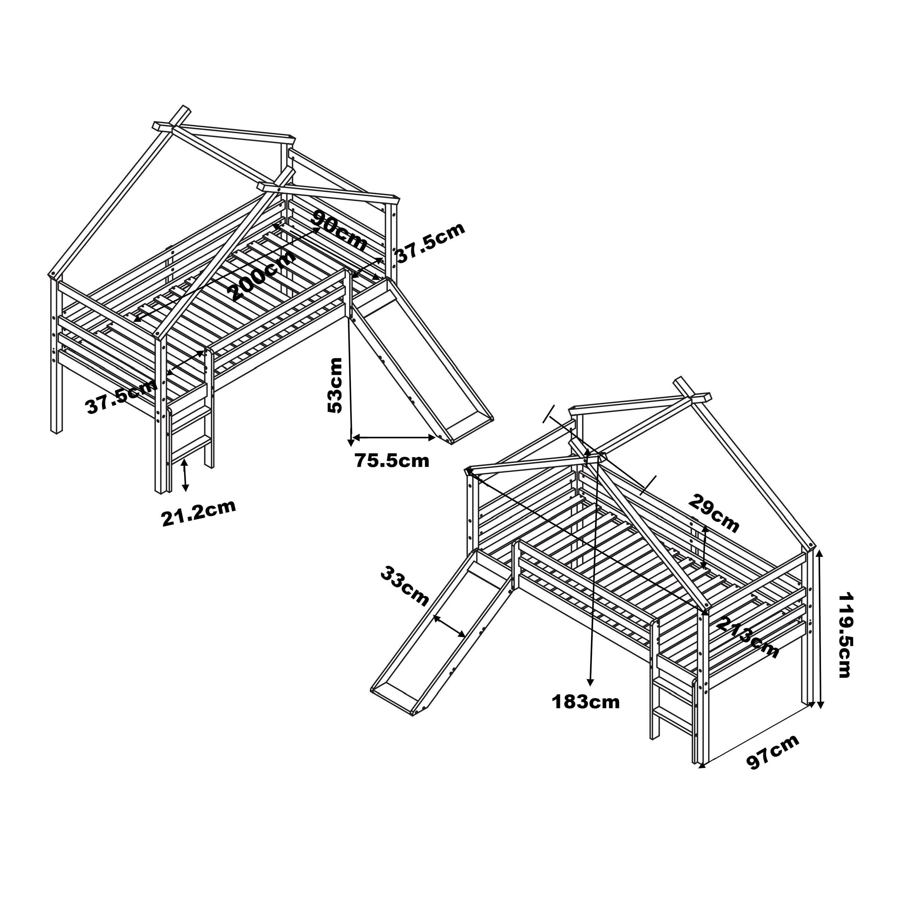De stevige uitvalbeveiliging rondom het slaapgedeelte zorgt ervoor dat je kindje ook tijdens de wildste dromen veilig blijft liggen. De trap is stevig en makkelijk te beklimmen, en de glijbaan heeft een glad oppervlak met zachte randen voor extra comfort. Dankzij de halfhoge constructie blijft er onder het bed ruimte over voor een speelplek, opbergboxen of een knus leeshoekje.