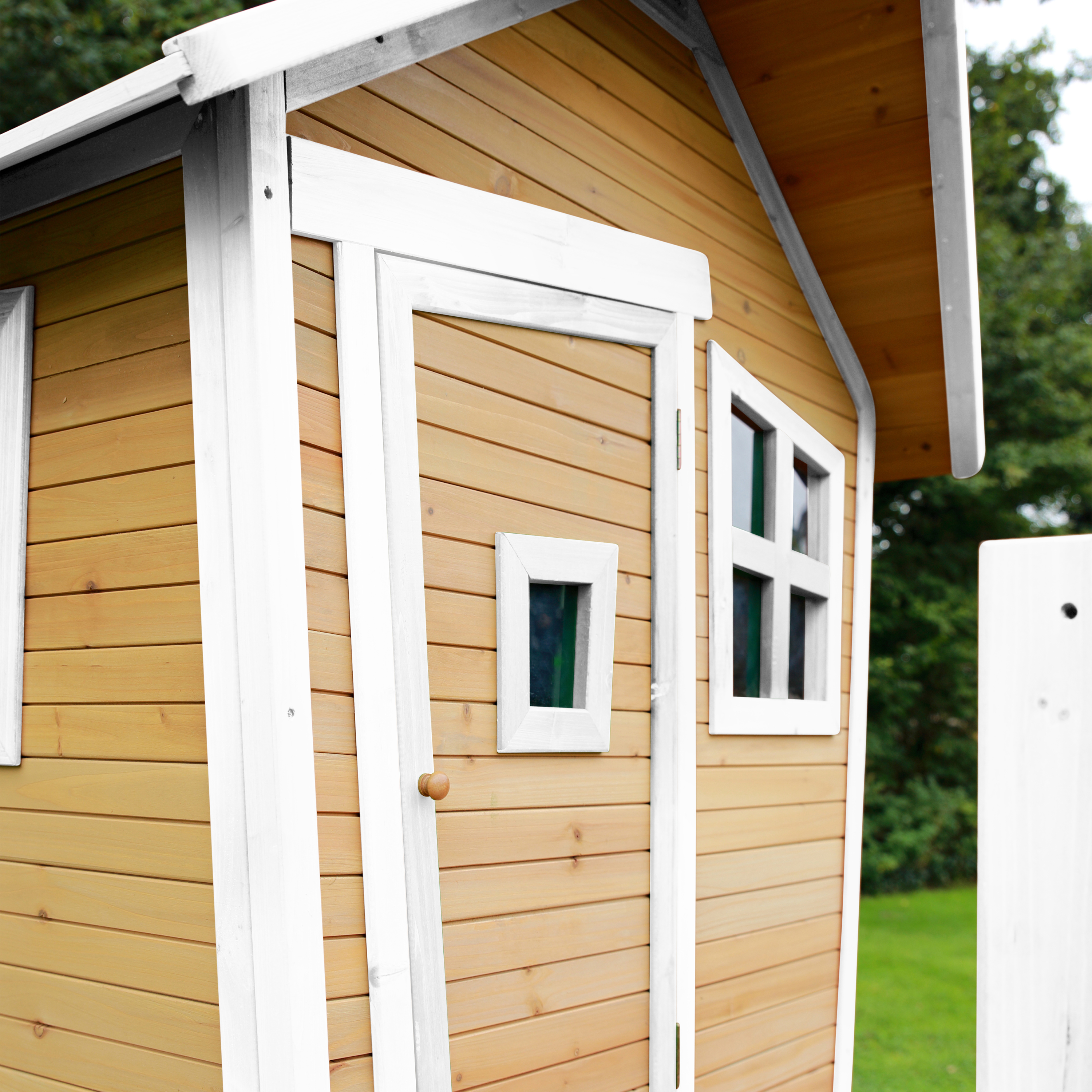 AXI speelhuisjes zijn opgebouwd uit voorgemonteerde (Prefab) panelen, waarbij ook de eventuele ramen en deur(en) zijn voorgemonteerd. De onderdelen zijn veelal voorgeboord waardoor het huisje in een handomdraai opgebouwd is.