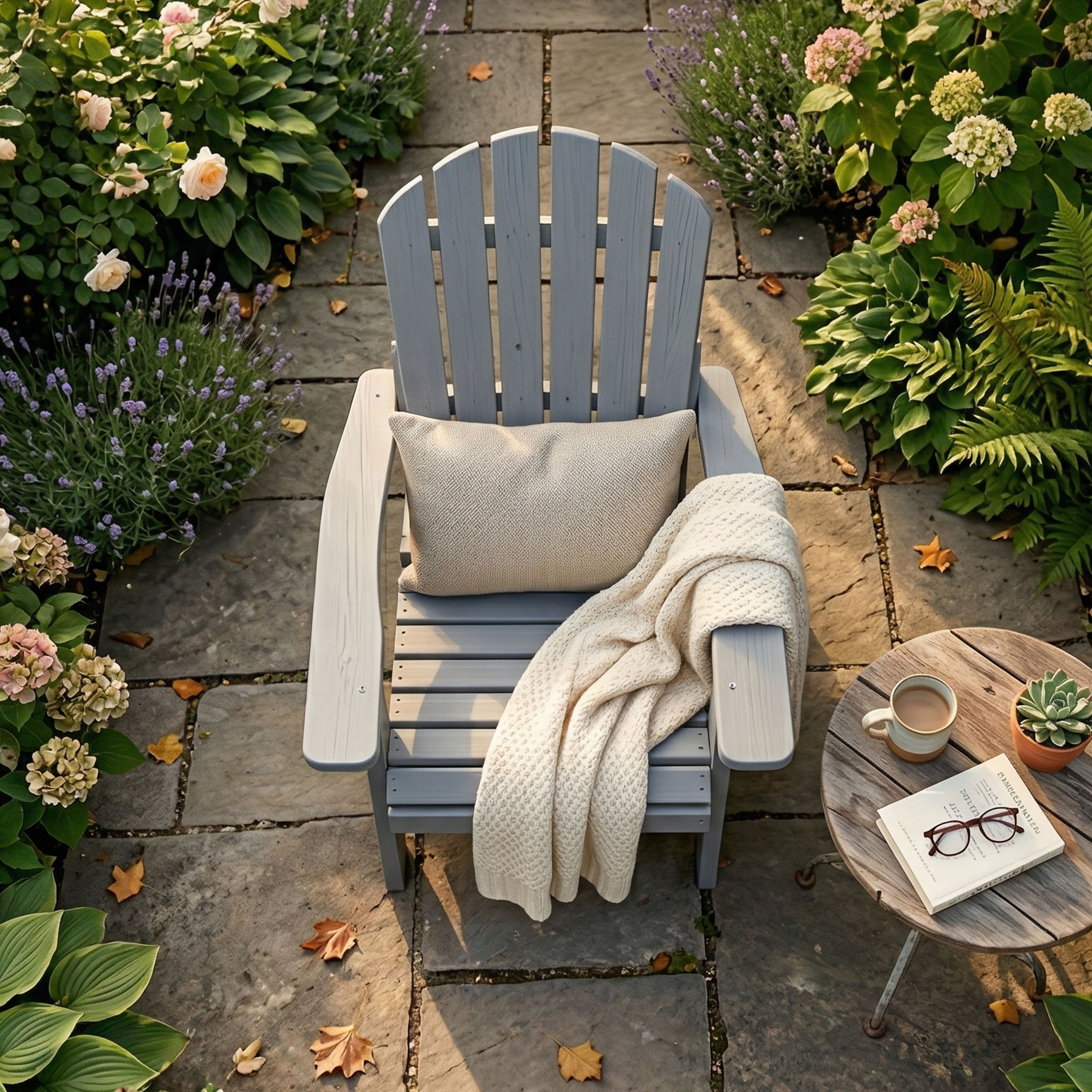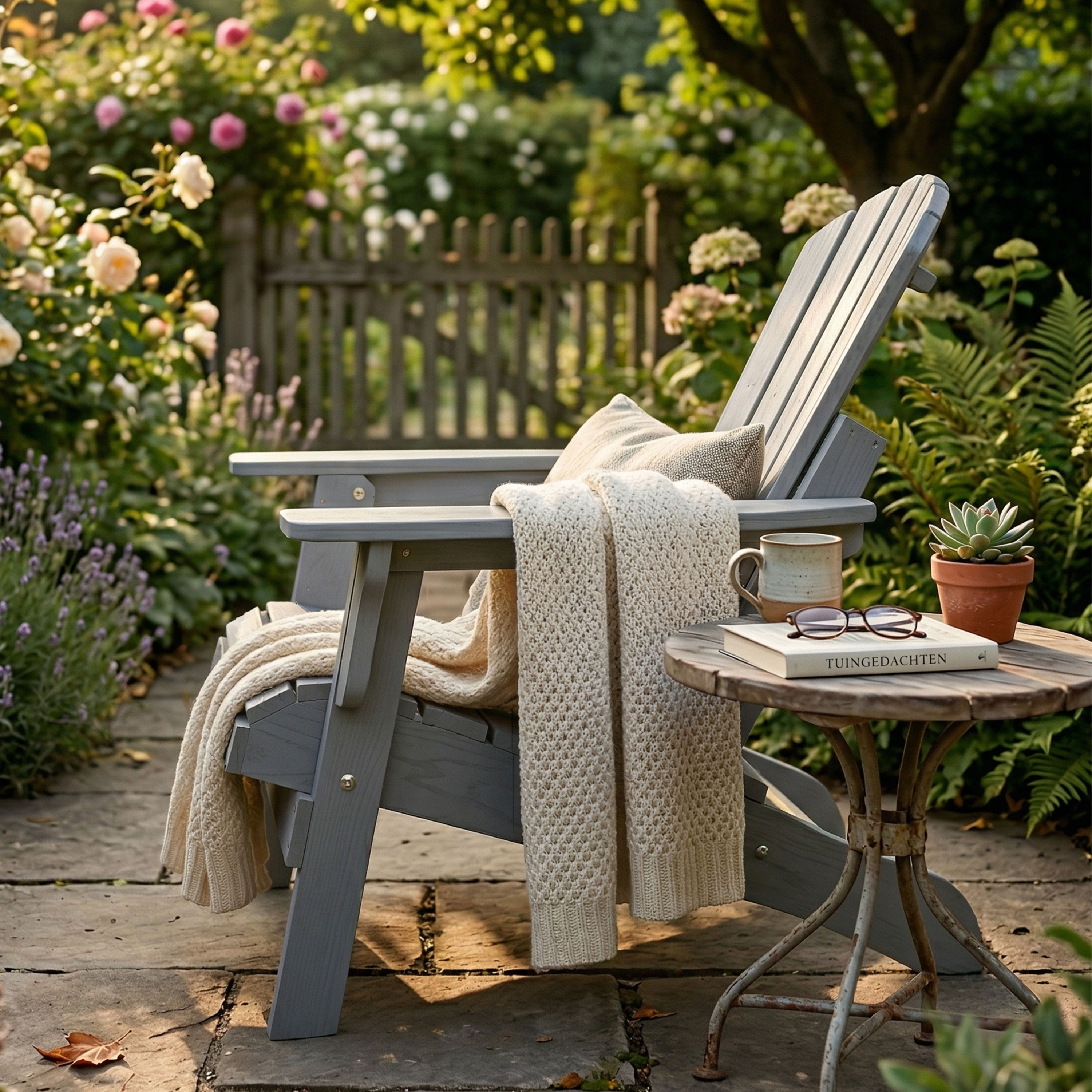 De Rosalie Adirondack stoel heeft een hoge rugleuning en een diepe zit, waardoor je lichaam goed wordt ondersteund tijdens het ontspannen. De brede armleuningen bieden extra comfort en zijn ideaal om even een drankje of boek op te laten rusten. Dankzij de zithoogte en zitdiepte zit je ontspannen achterover, precies zoals een Adirondack stoel bedoeld is.