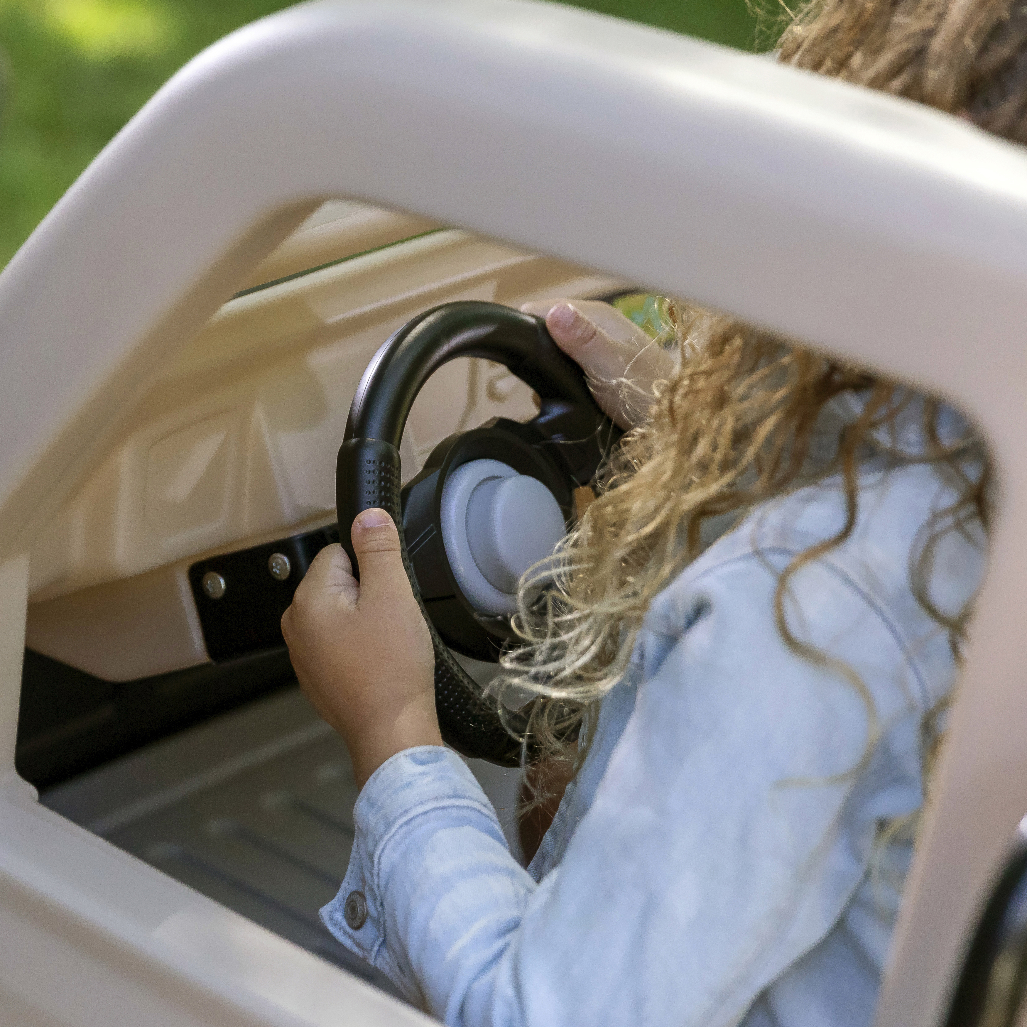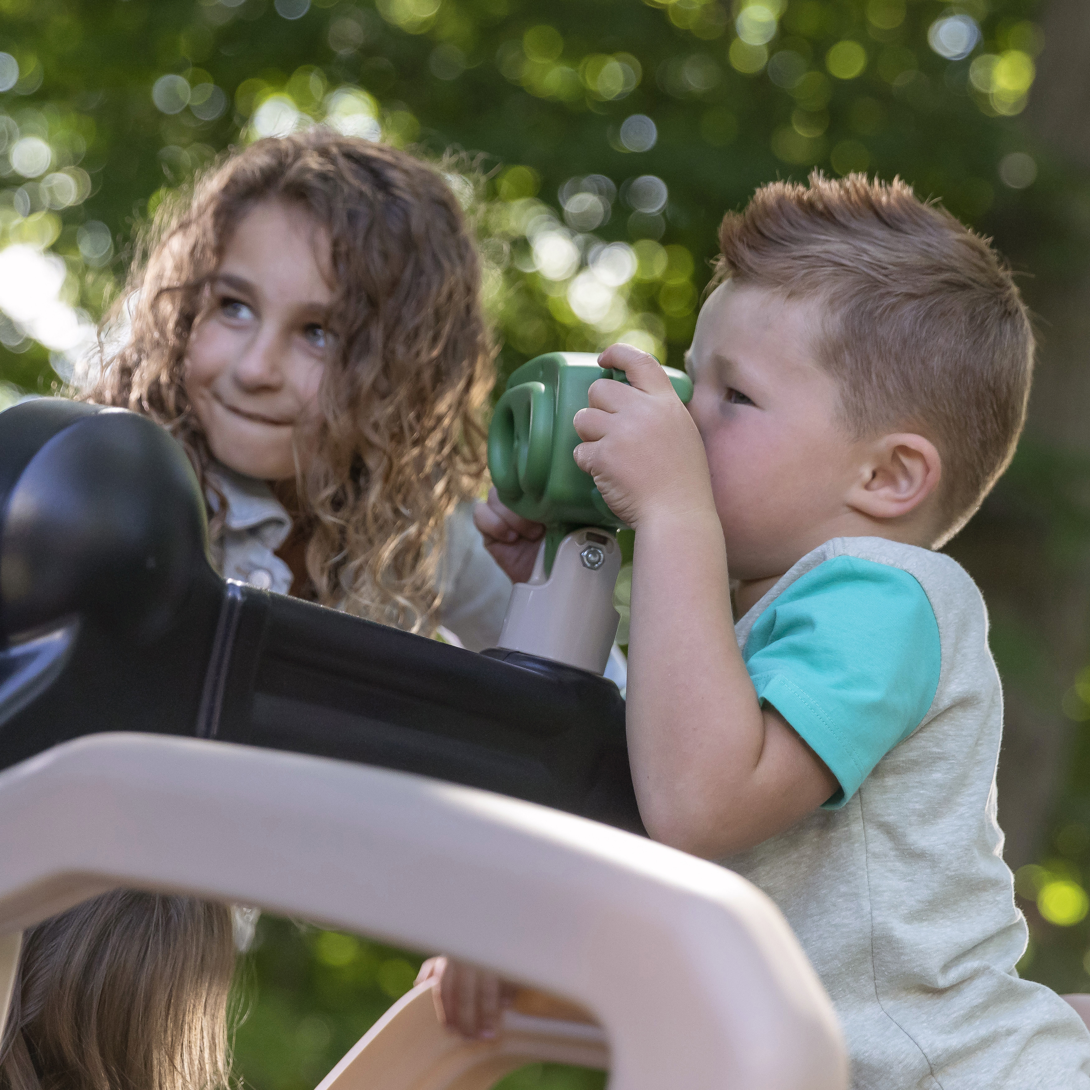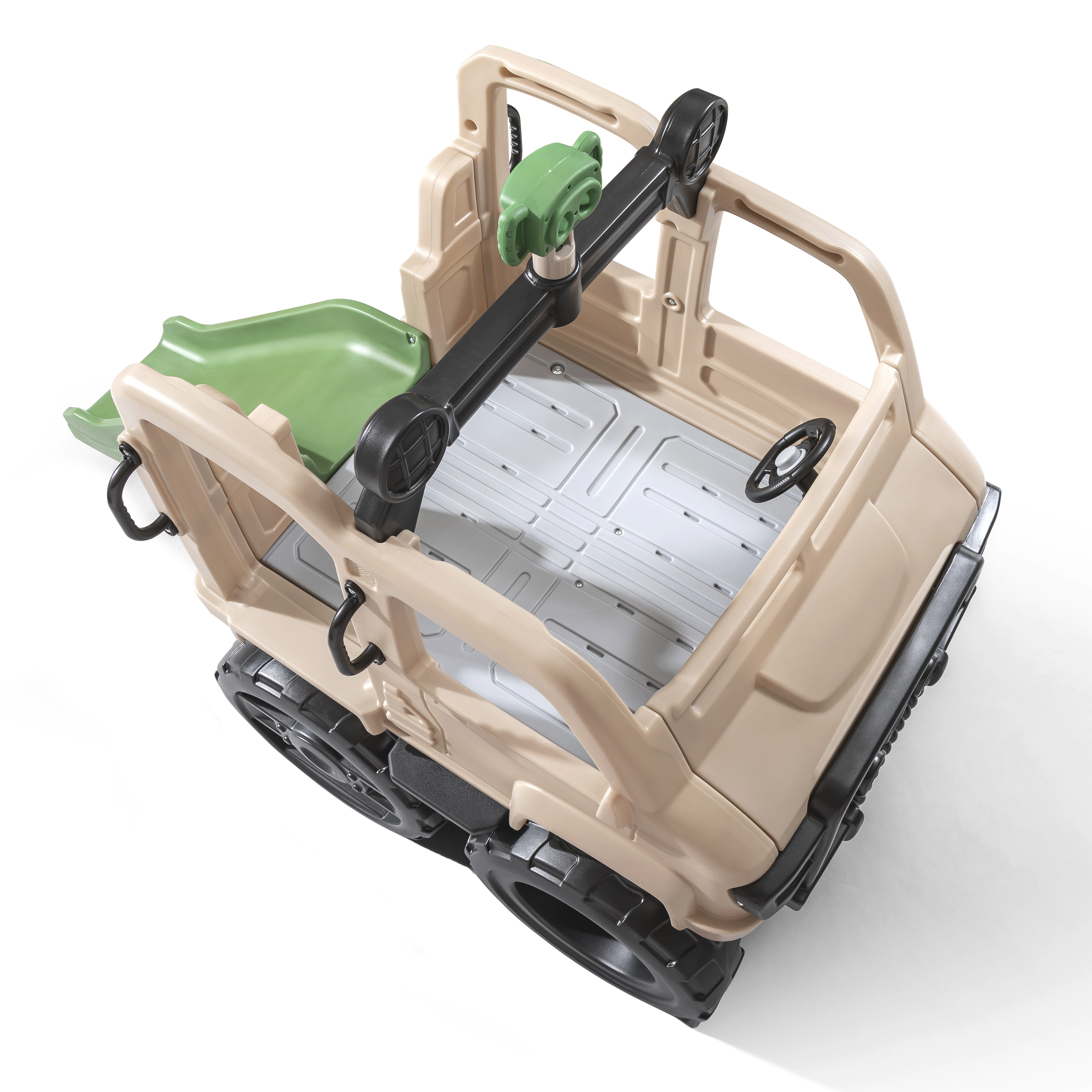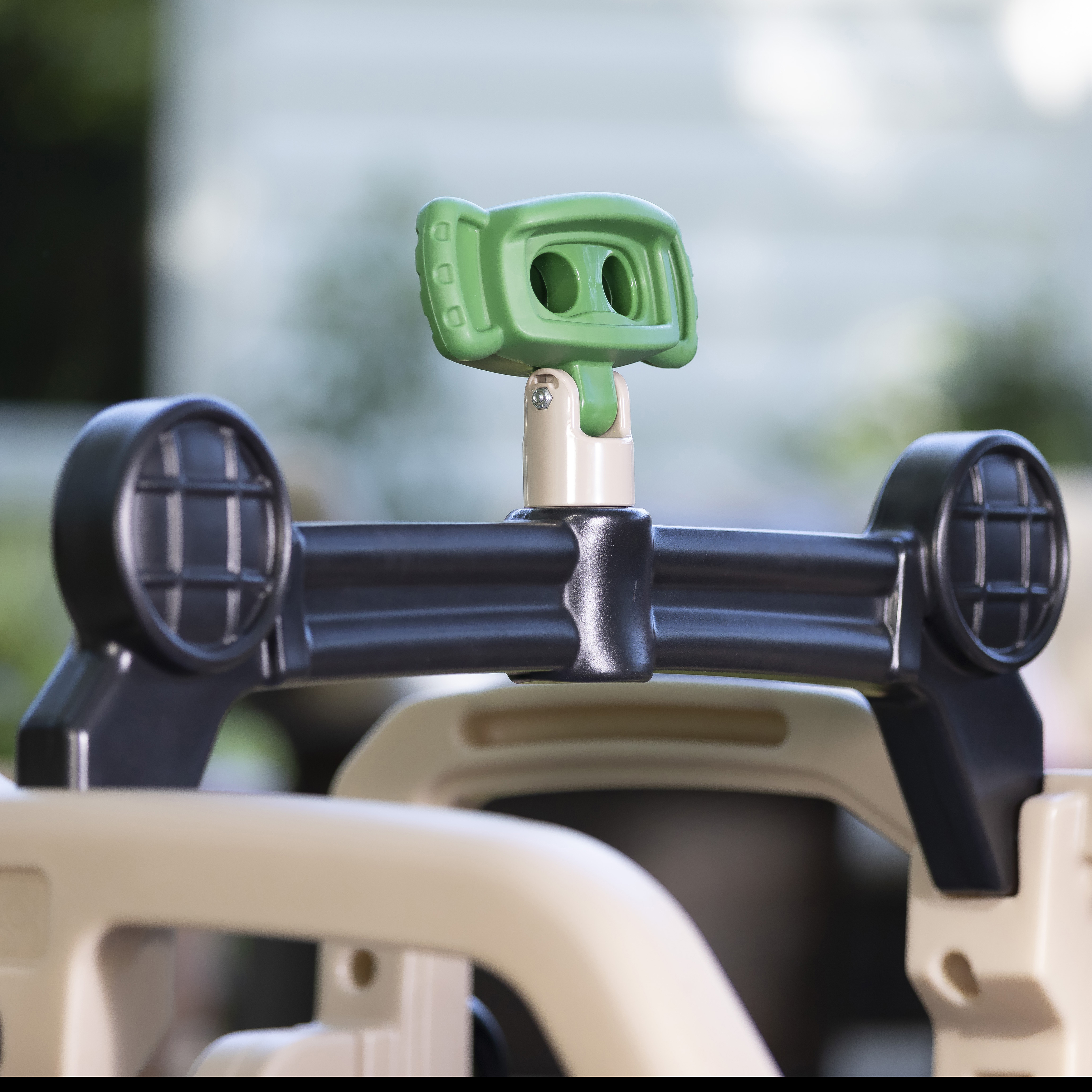 Verander je achtertuin in een wild avontuur met de Step2 Safari Truck Climber! Dit stoere klimtoestel in de form van een terreinwagen heeft een realistisch off-road ontwerp, met oversized wielen, een neutraal, safari kleurenpalet, een open dakdesign en een stoere grille met koplampstickers. Hij heeft zelfs een verrekijker waarmee je wilde dieren kunt spotten! Kleine avonturiers kunnen door de oversized wielen kruipen of deze als trap gebruiken om naar het bovenste platform te klimmen. Wanneer ze in de terreinwagen zitten, kunnen kinderen om de beurt aan het stuur zitten en door de verrekijker kijken. Als je kleintjes er klaar voor zijn om wilde dieren van dichtbij te zien, kunnen ze van de glijbaan glijden en vrij tussen de dieren rondlopen!