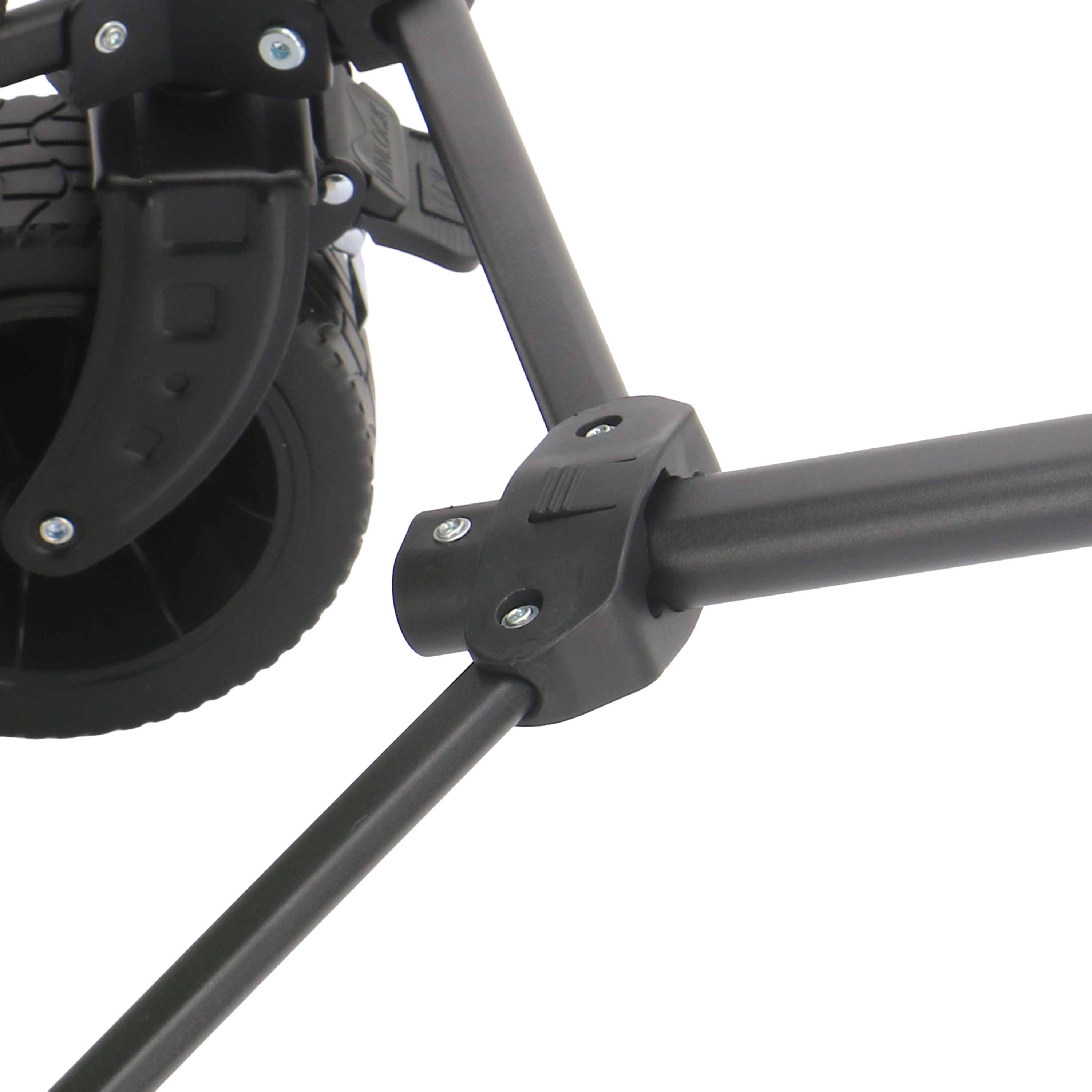 De vier stevige PP rubberen wielen met een diameter van 15,2 cm zorgen voor een soepele rit over verschillende ondergronden en zijn met name geschikt voor stadsgebruik, zoals op asfalt en verharde paden. De remmen op de voorwielen bieden extra veiligheid wanneer je even stilstaat, bijvoorbeeld op een helling of ongelijke ondergrond.