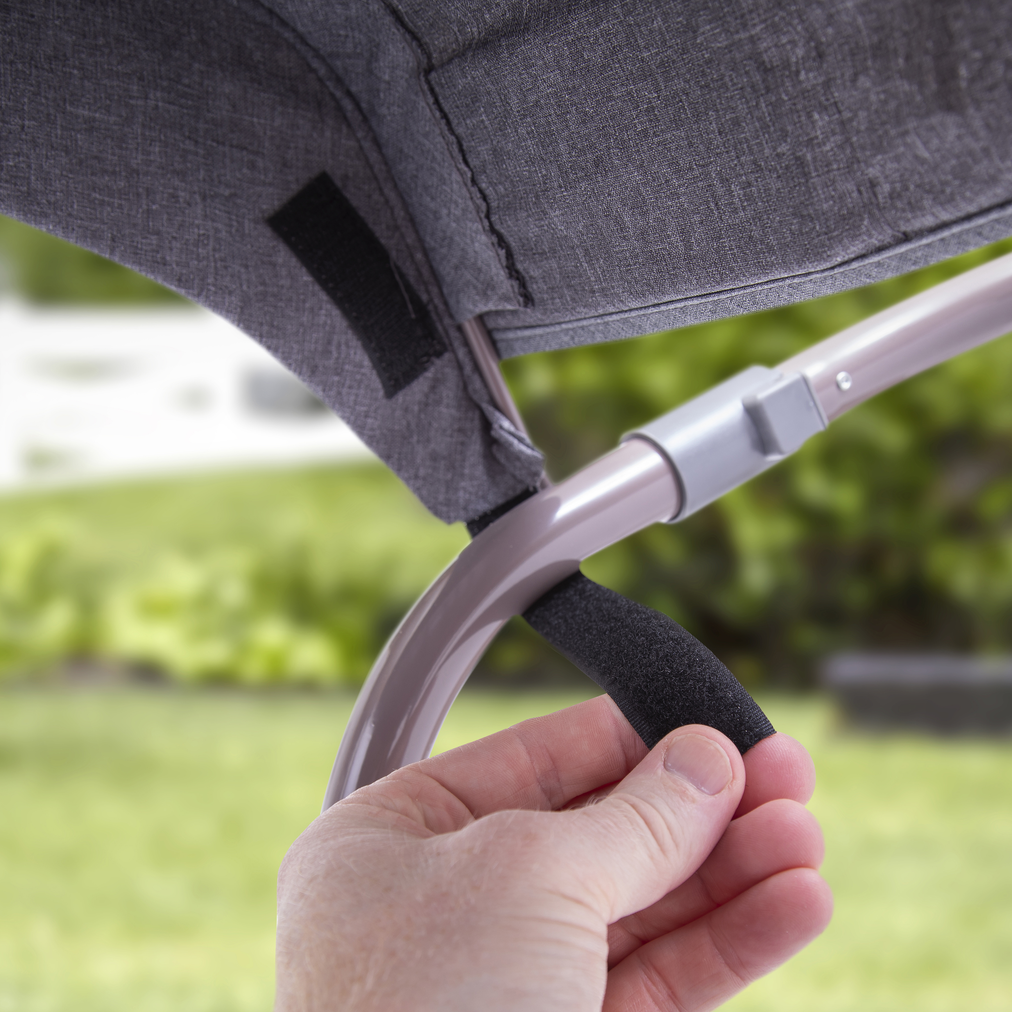 - De kap is eenvoudig te demonteren om het transport in de meeste standaard kofferbakken te vereenvoudigen.
