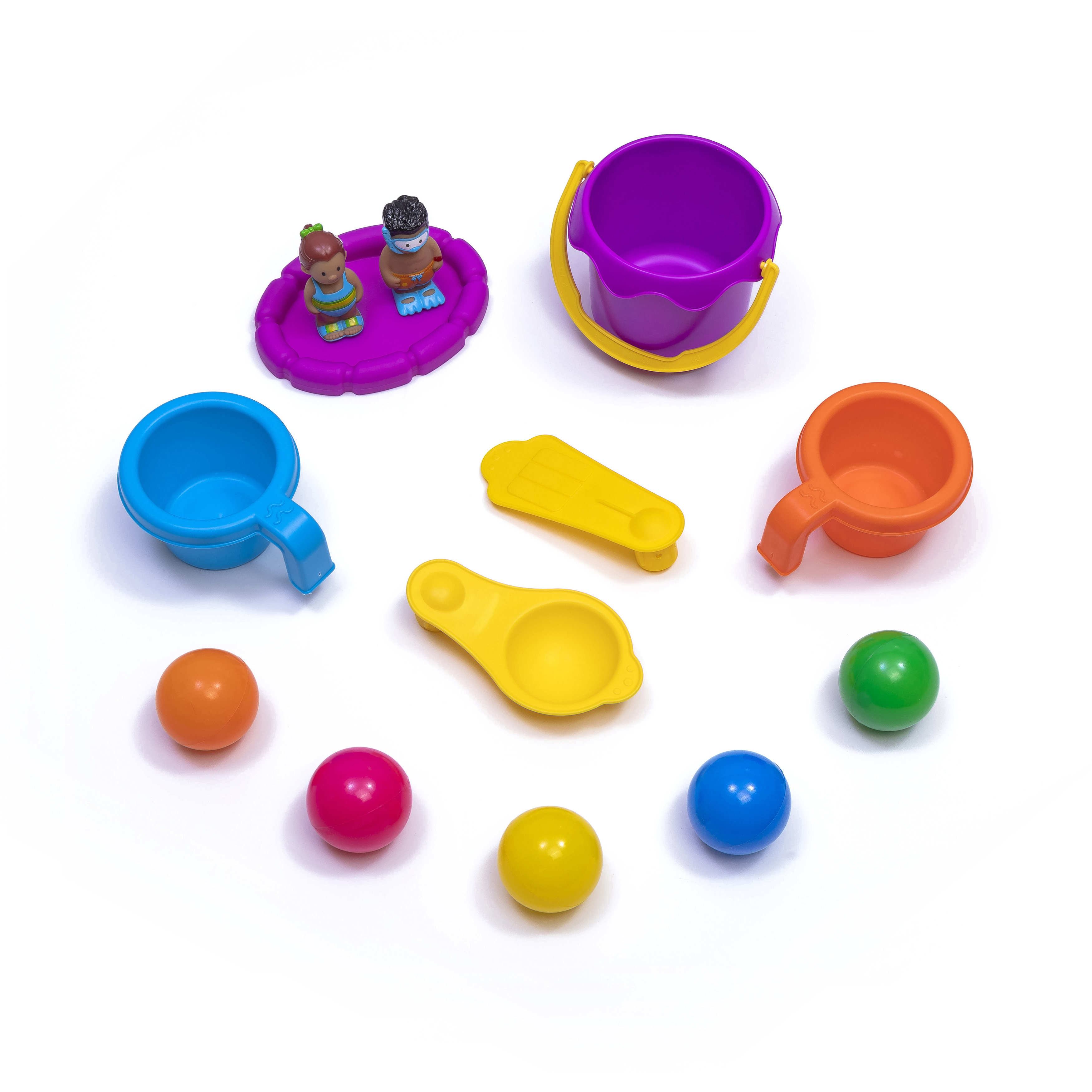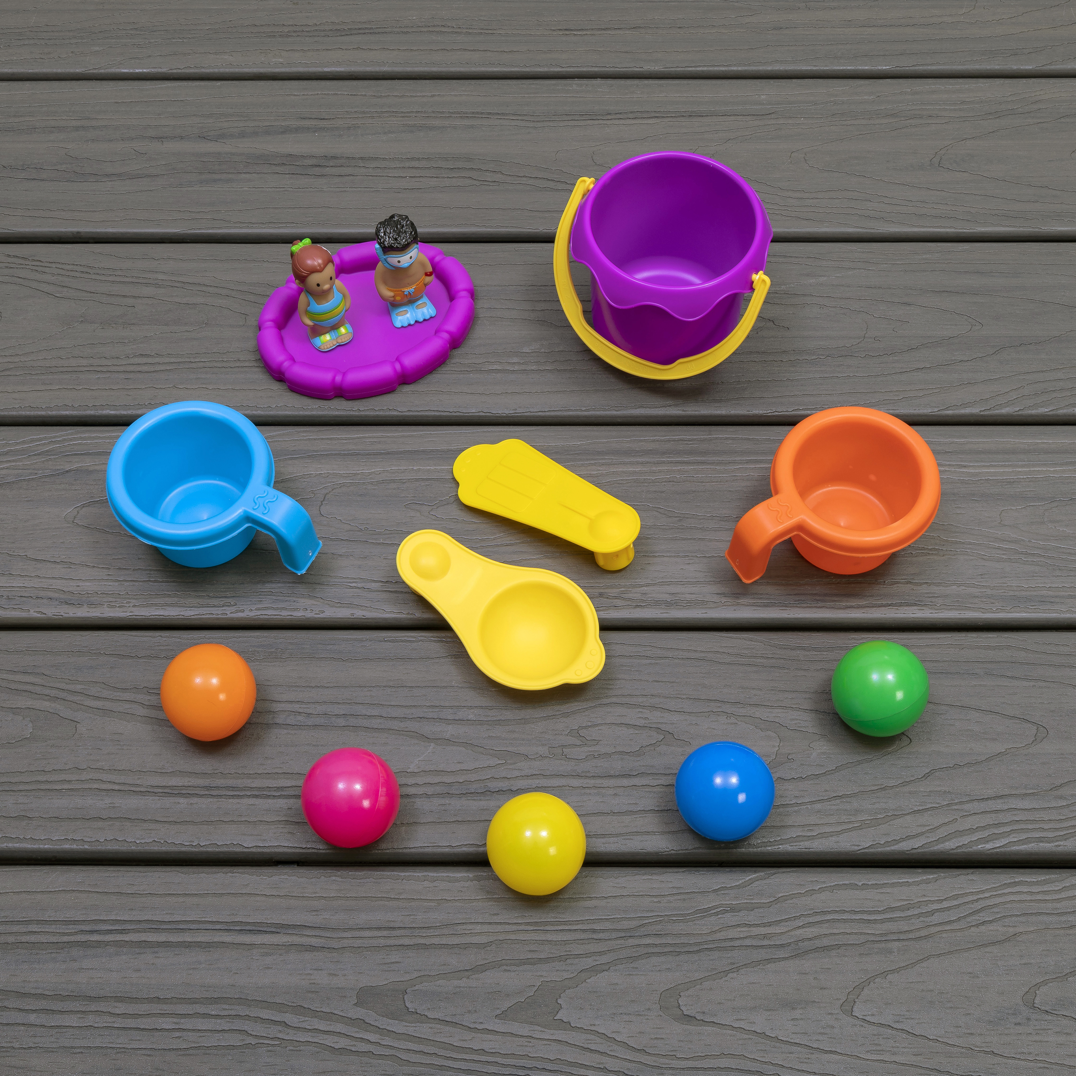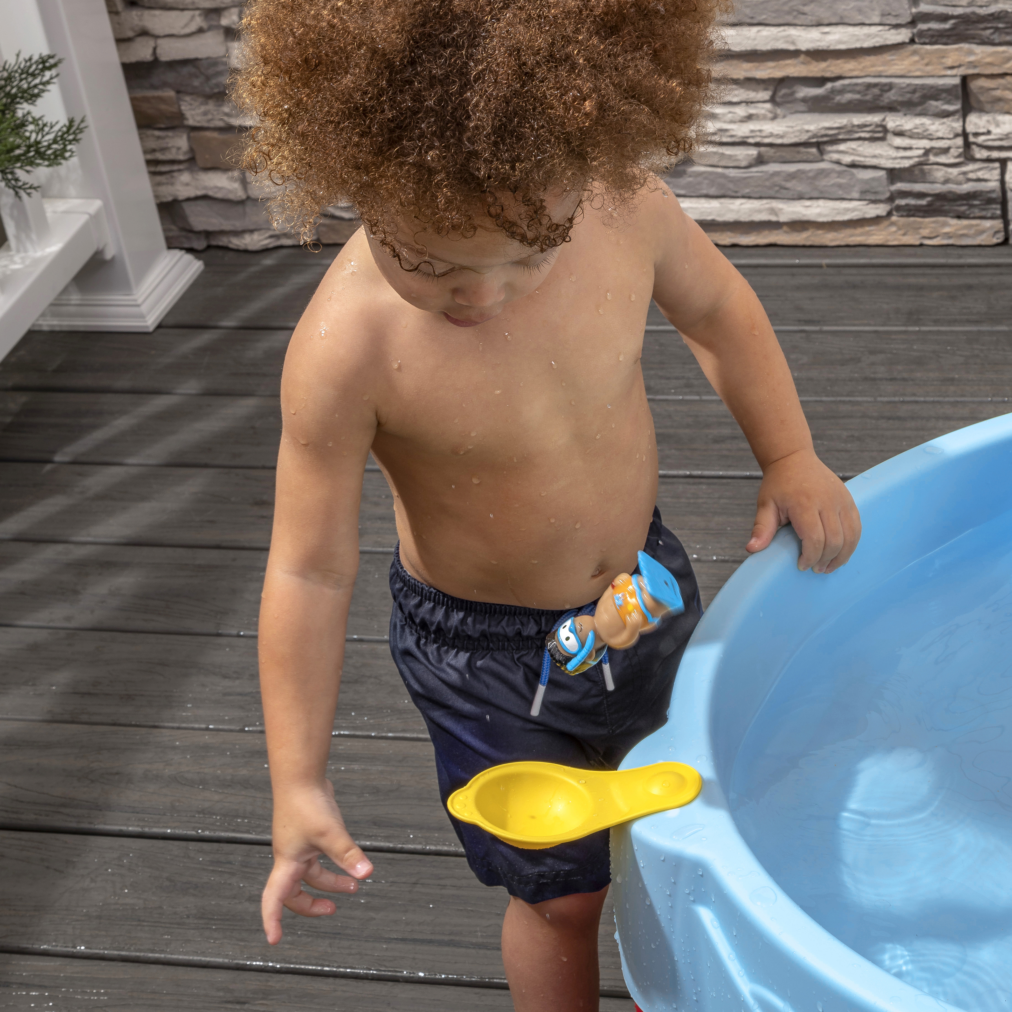De meegeleverde speelfiguurtjes staan te popelen om hun avontuur te beginnen. Ze glijden snel naar beneden van de waterglijbaan en plonzen met een grote glimlach in de watervijver. Dankzij het unieke 360-graden ontwerp is deze watertafel ideaal voor kinderen om samen met hun vriendjes te spelen.