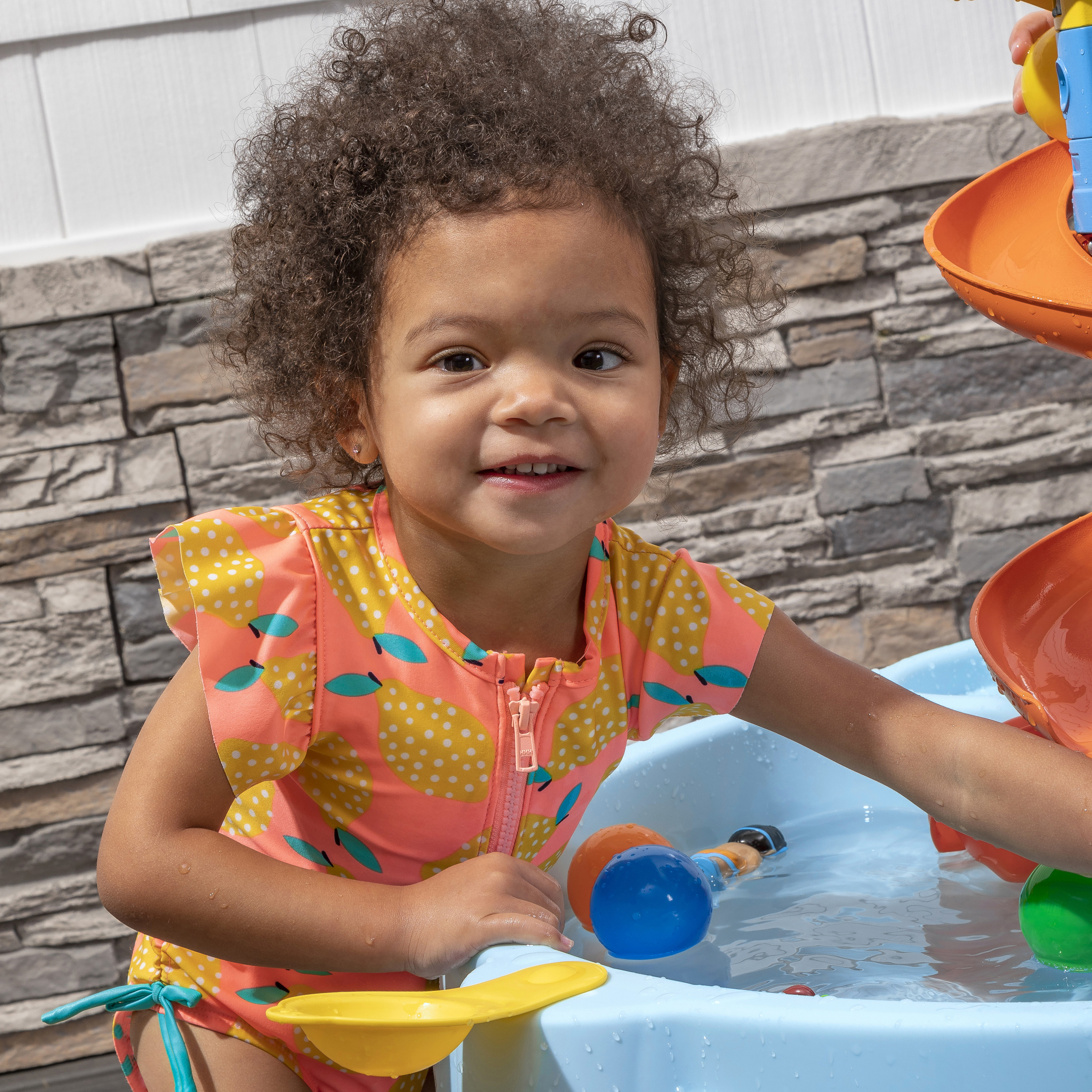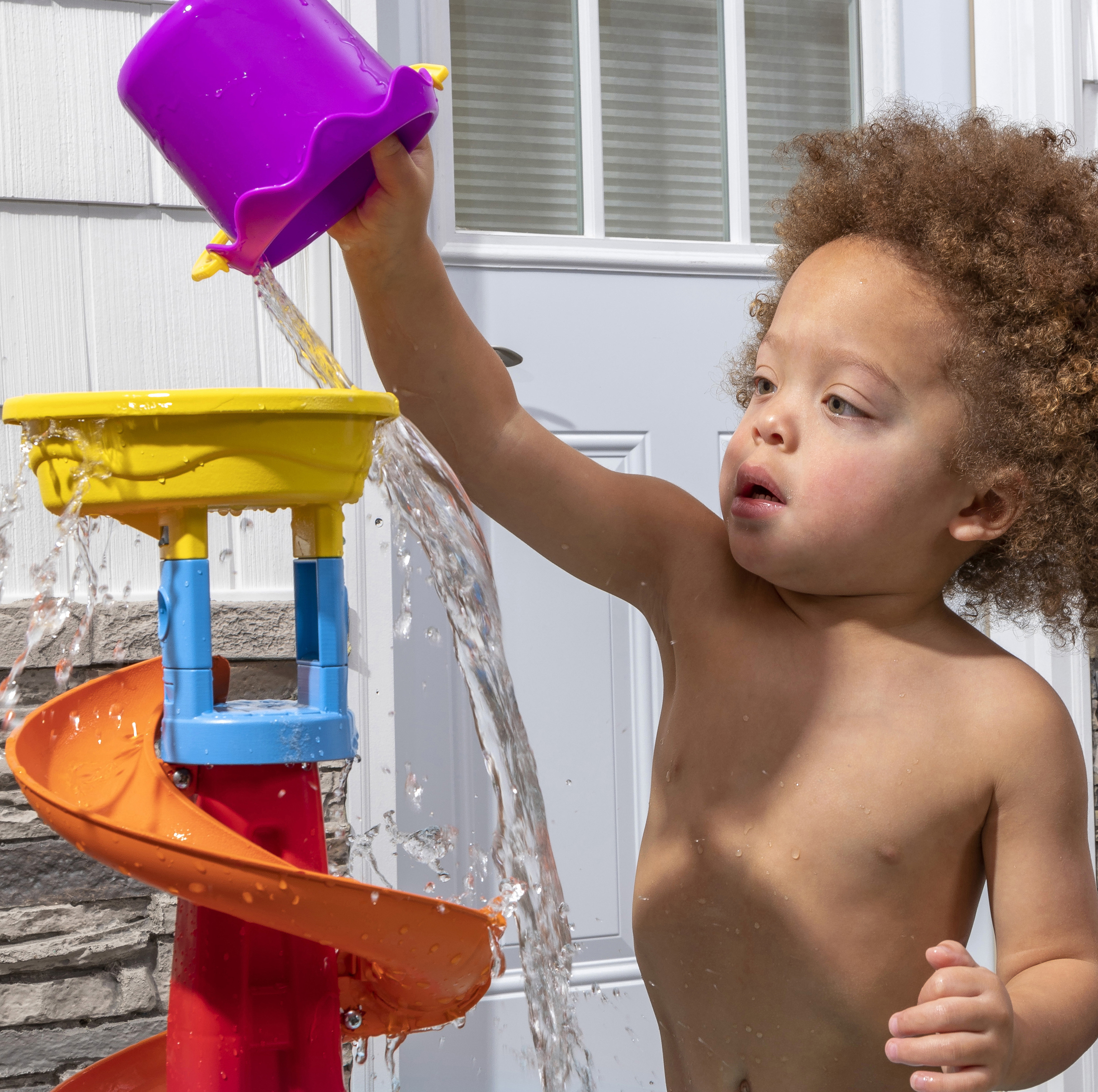 Met de Step2 Spiral Slide Watertafel beleeft je kleintje eindeloos plezier! Vul de emmer om het water over de glijbaan te laten stromen en een spetterende regenbui te maken. Voor extra uitdaging kunnen peuters de zijflippers gebruiken om speelballen omhoog te lanceren. Lukt het om de bal helemaal bovenin de toren te krijgen?