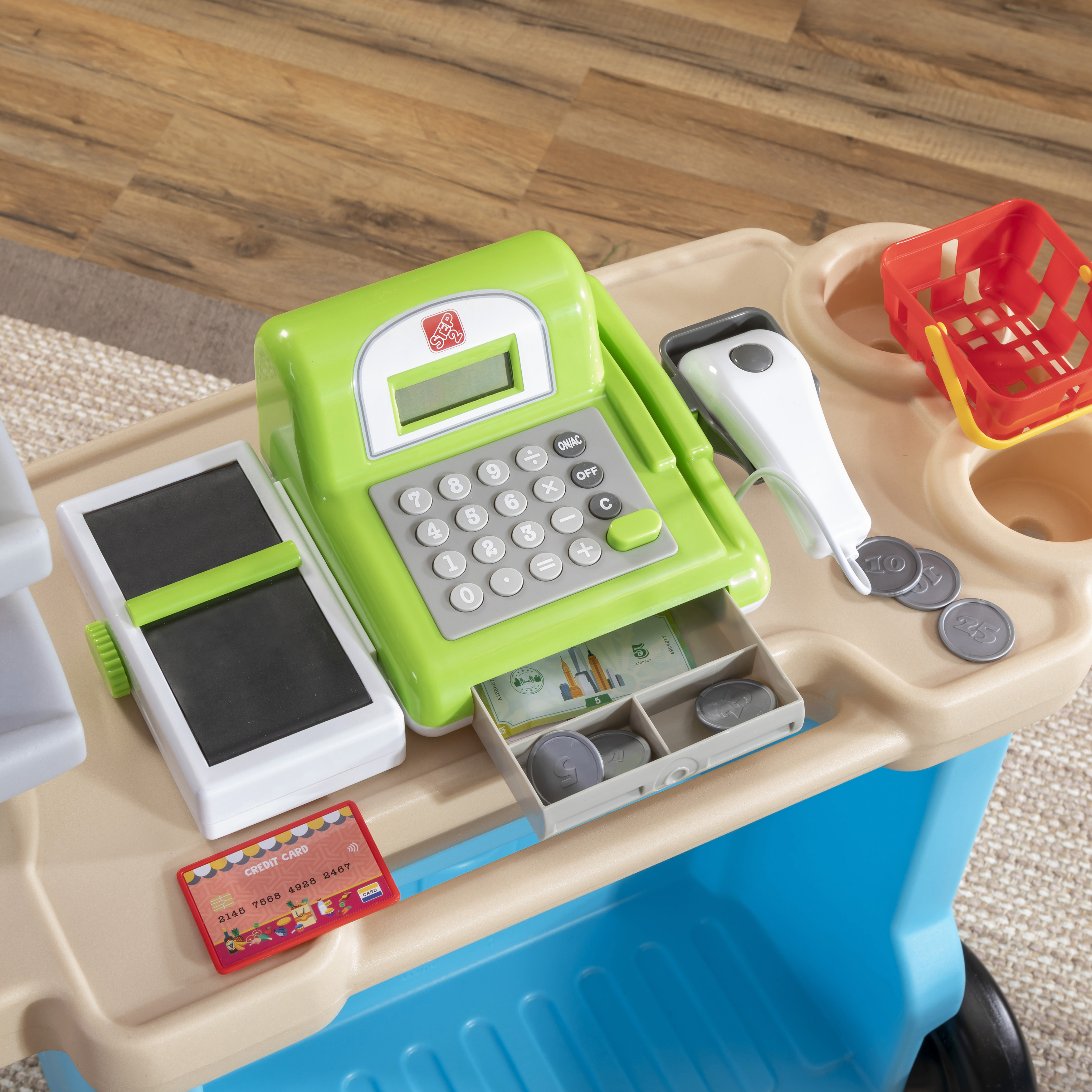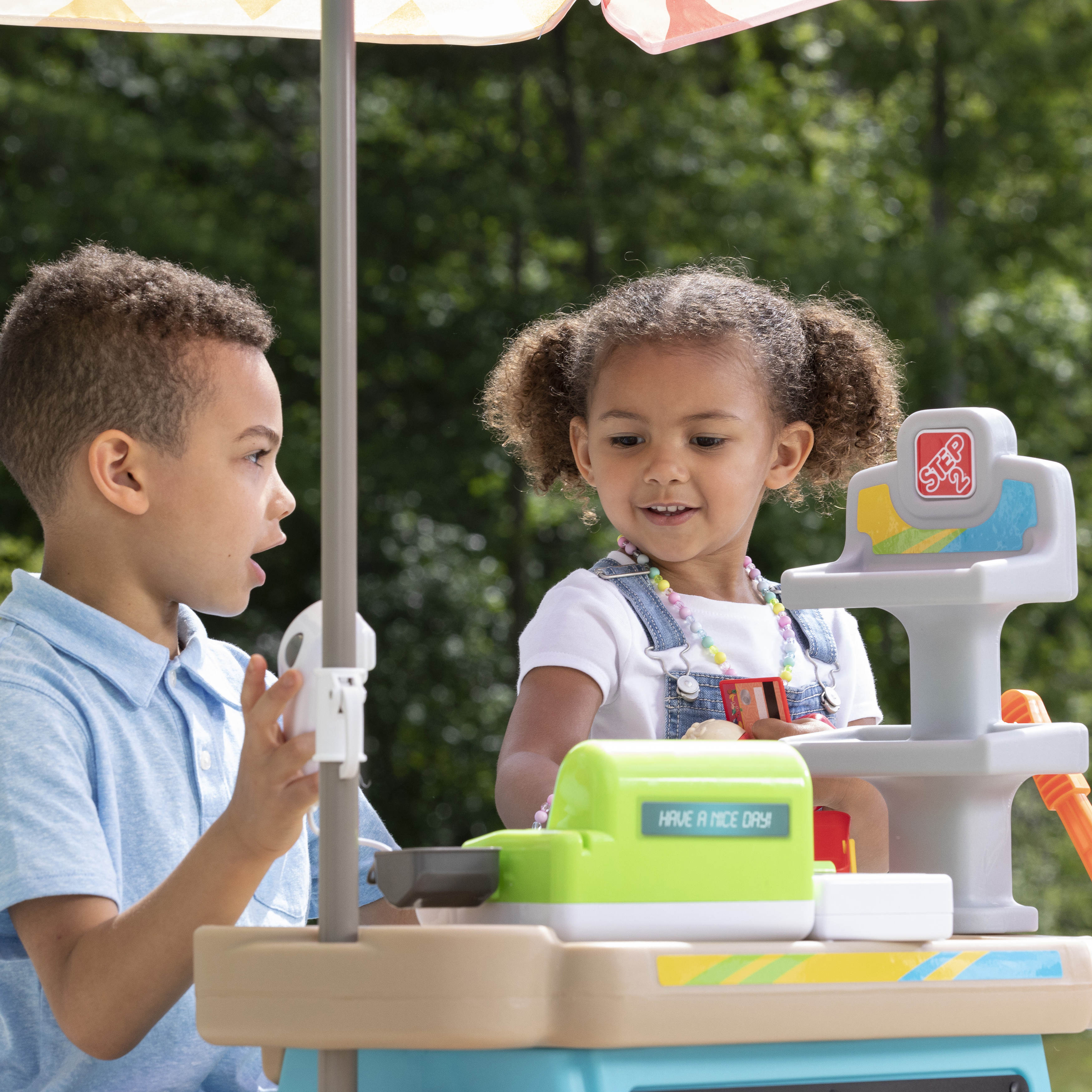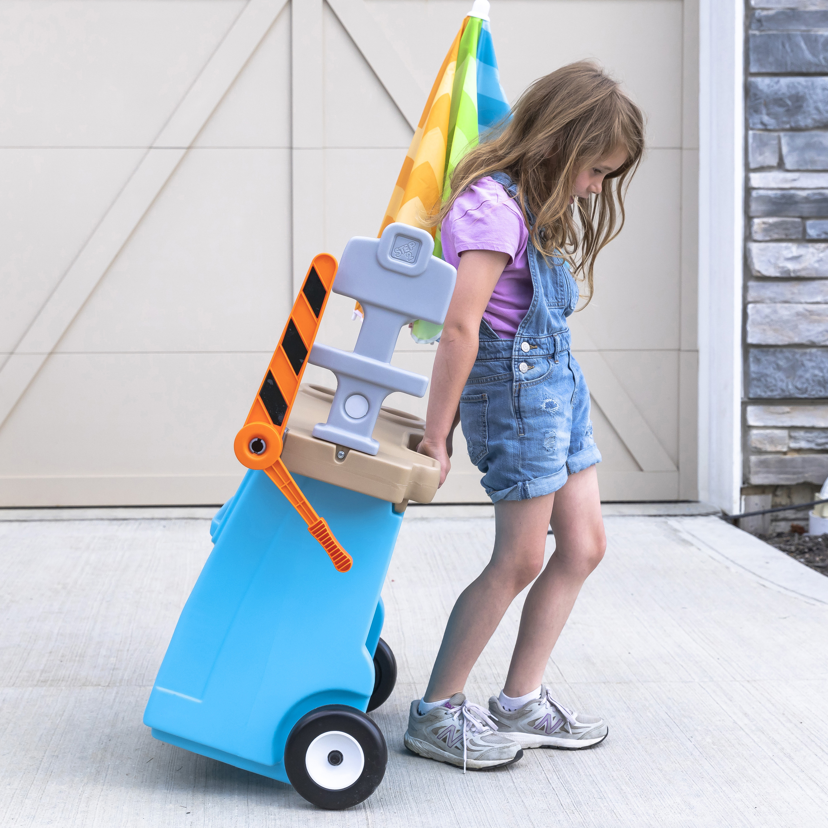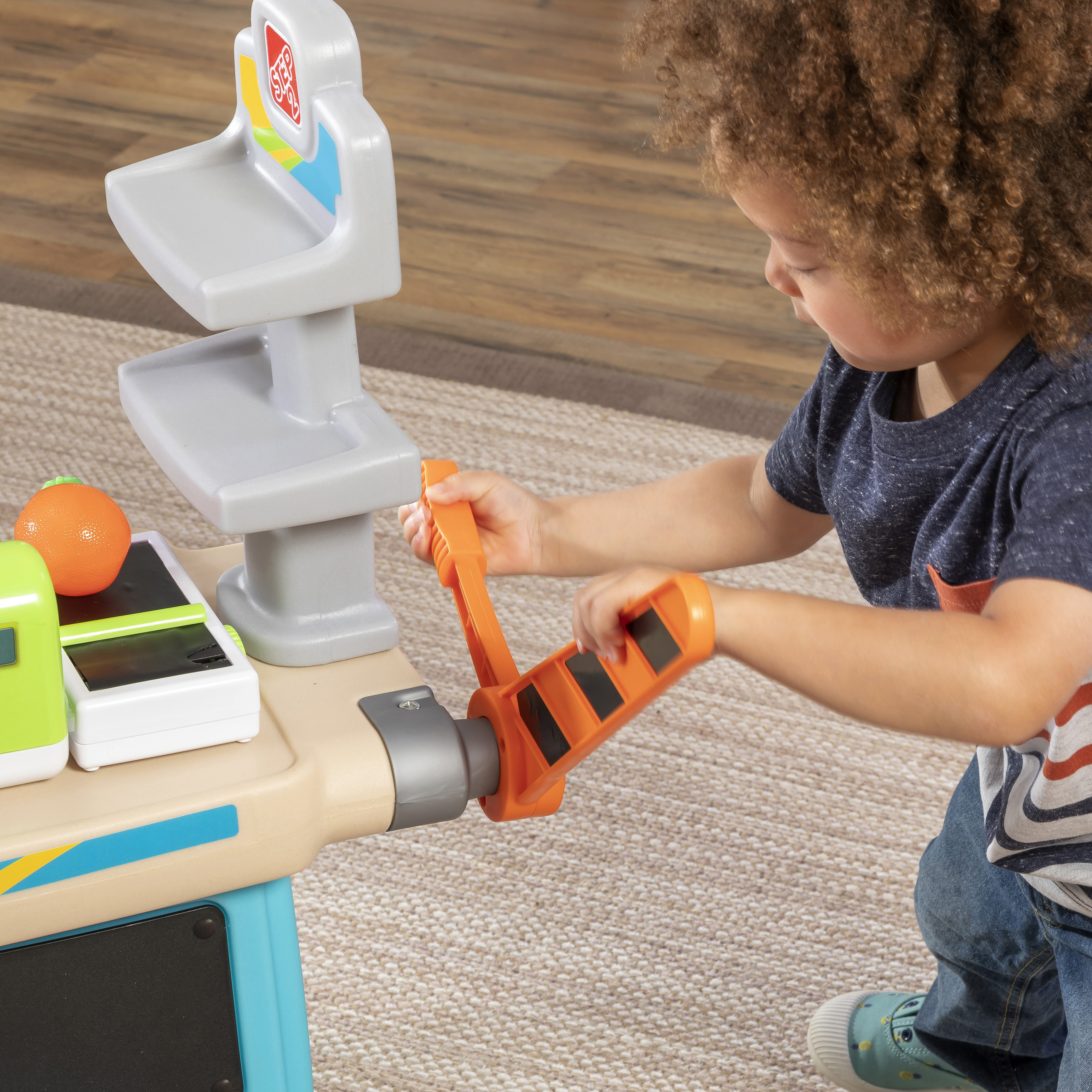 De Step2 Stop & Go Market is daar! Kleine ondernemers, zet jullie kraampjes maar klaar; we voorspellen veel plezier en leren! De Step2 Stop & Go markt heeft het allemaal! Deze speelgoed marktkraam heeft een benzinepomp, een tolhuisje, kegels, een krijtbord en een werkende kassier. Kinderen kunnen om de beurt spelen als de kassier en de klant. Kleintjes kunnen op hun fietsje of autootje naar de markt rijden om te tanken en tol te betalen. Ze kunnen zelfs het krijtbord gebruiken om dagaanbiedingen, benzineprijzen of de naam van hun markt op te schrijven. Deze speelmarkt heeft een parasol om kinderen te beschermen tegen de zon. Daarnaast heeft het wielen, zodat je kleintjes de markt gemakkelijk kunnen verplaatsen naar hun volgende locatie!