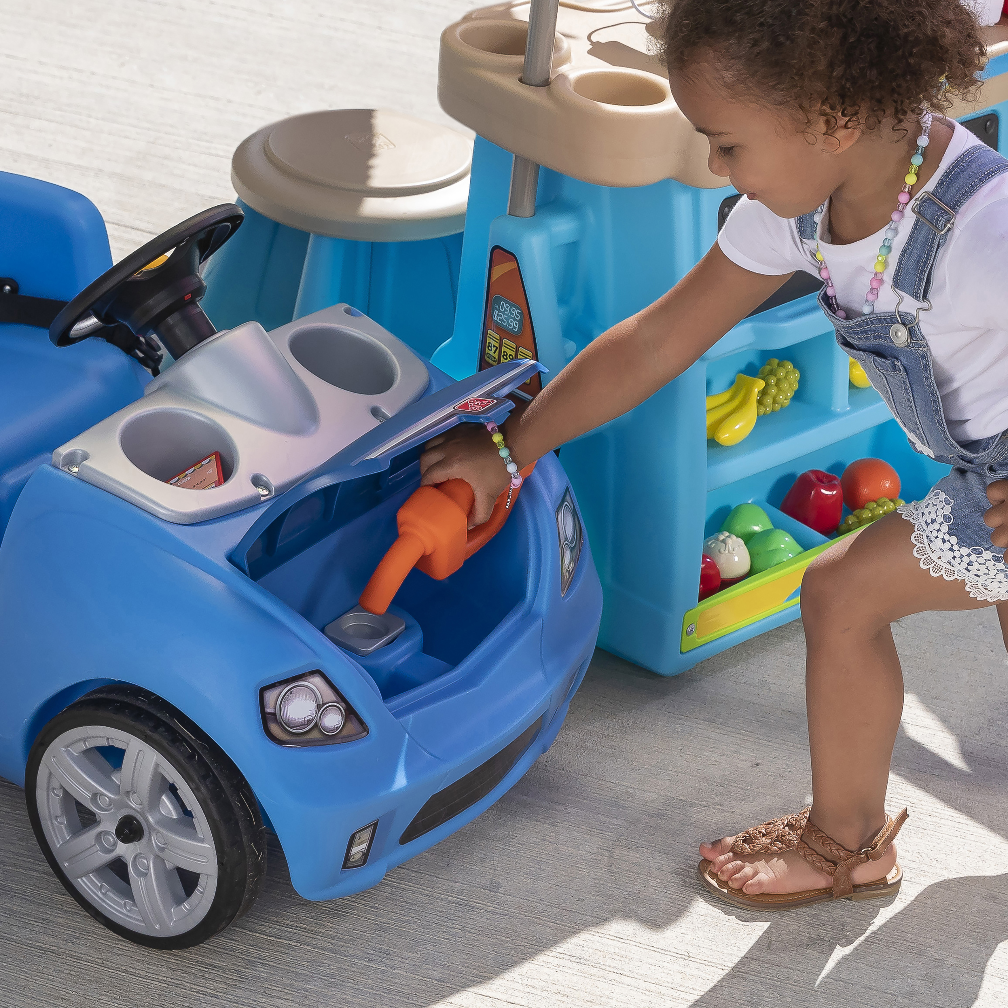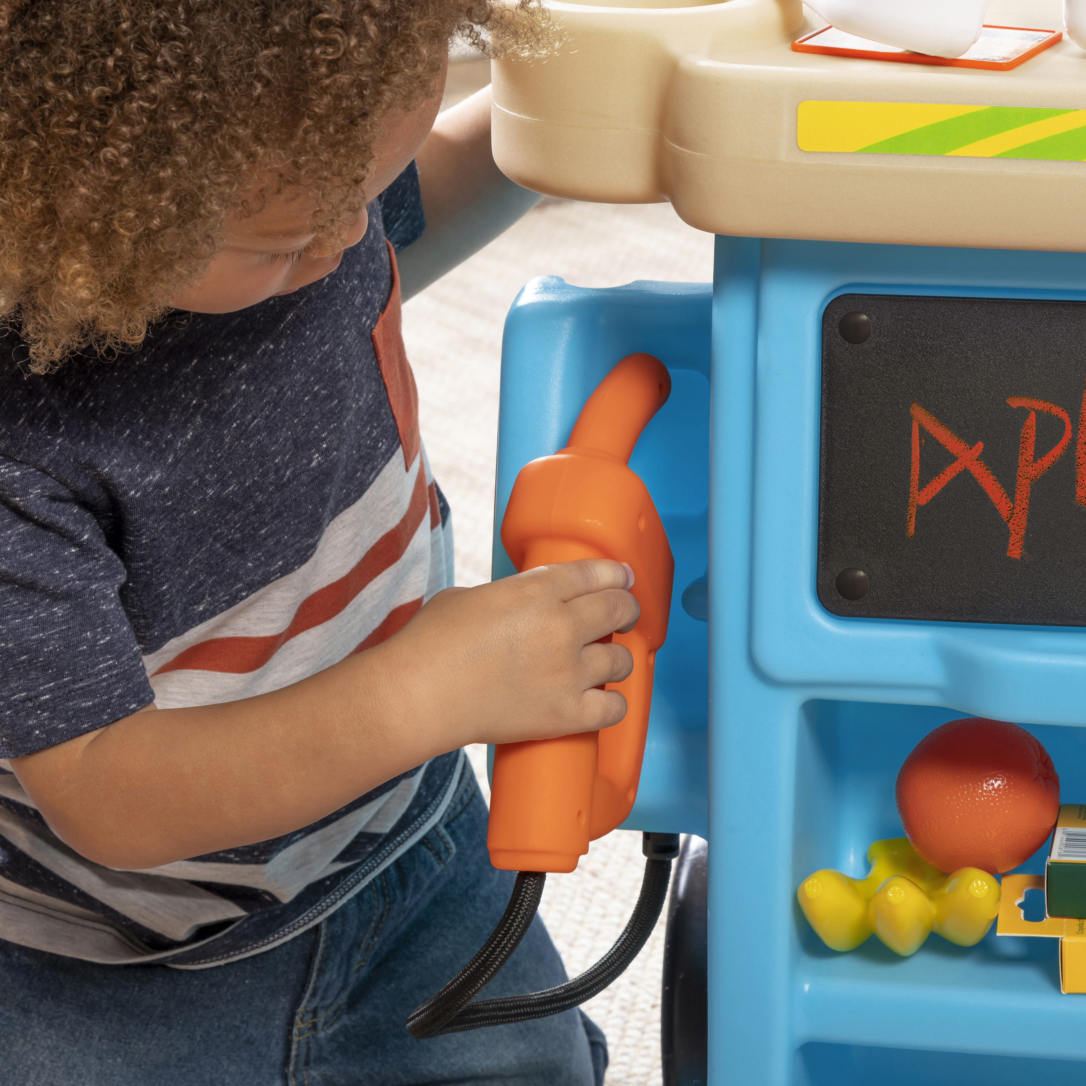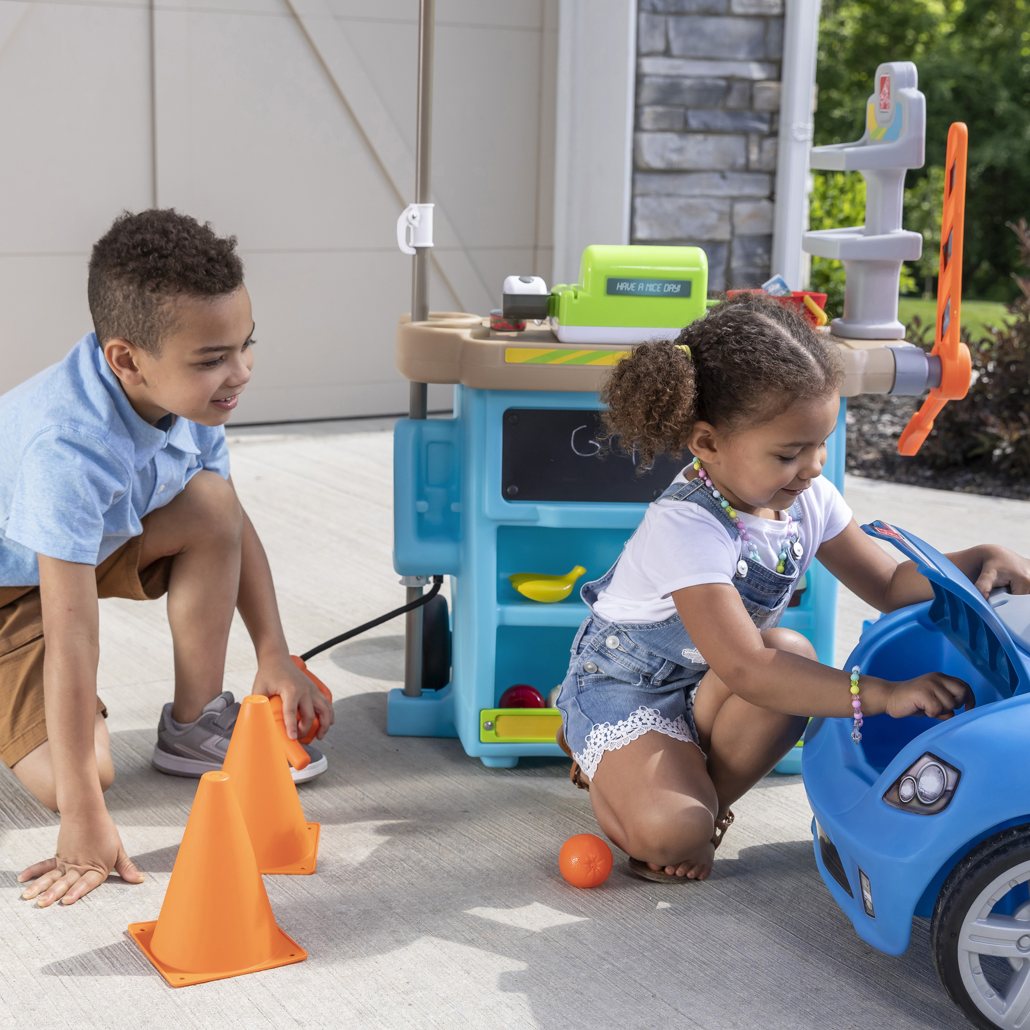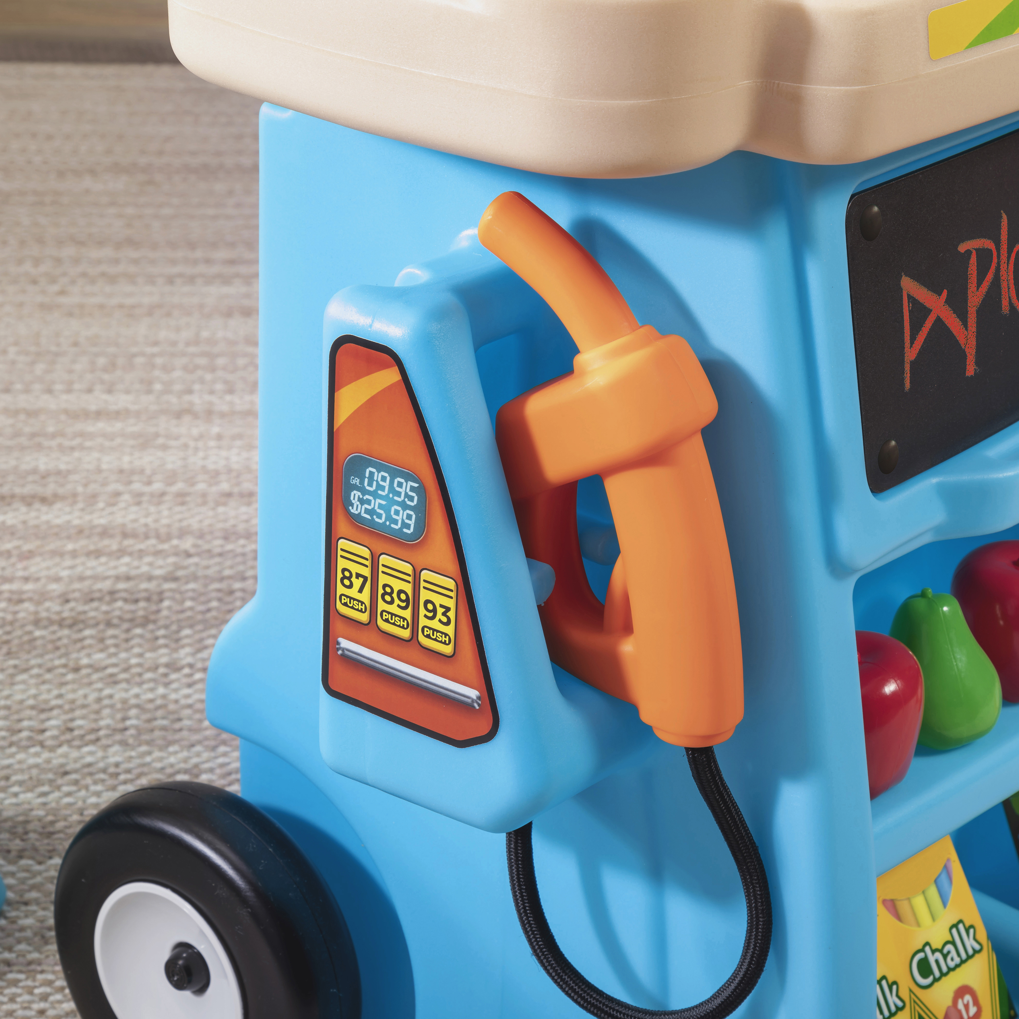 - Eindeloos speelplezier in één stuk speelgoed! Marktkraam, benzinestation en tolhuisje in één.