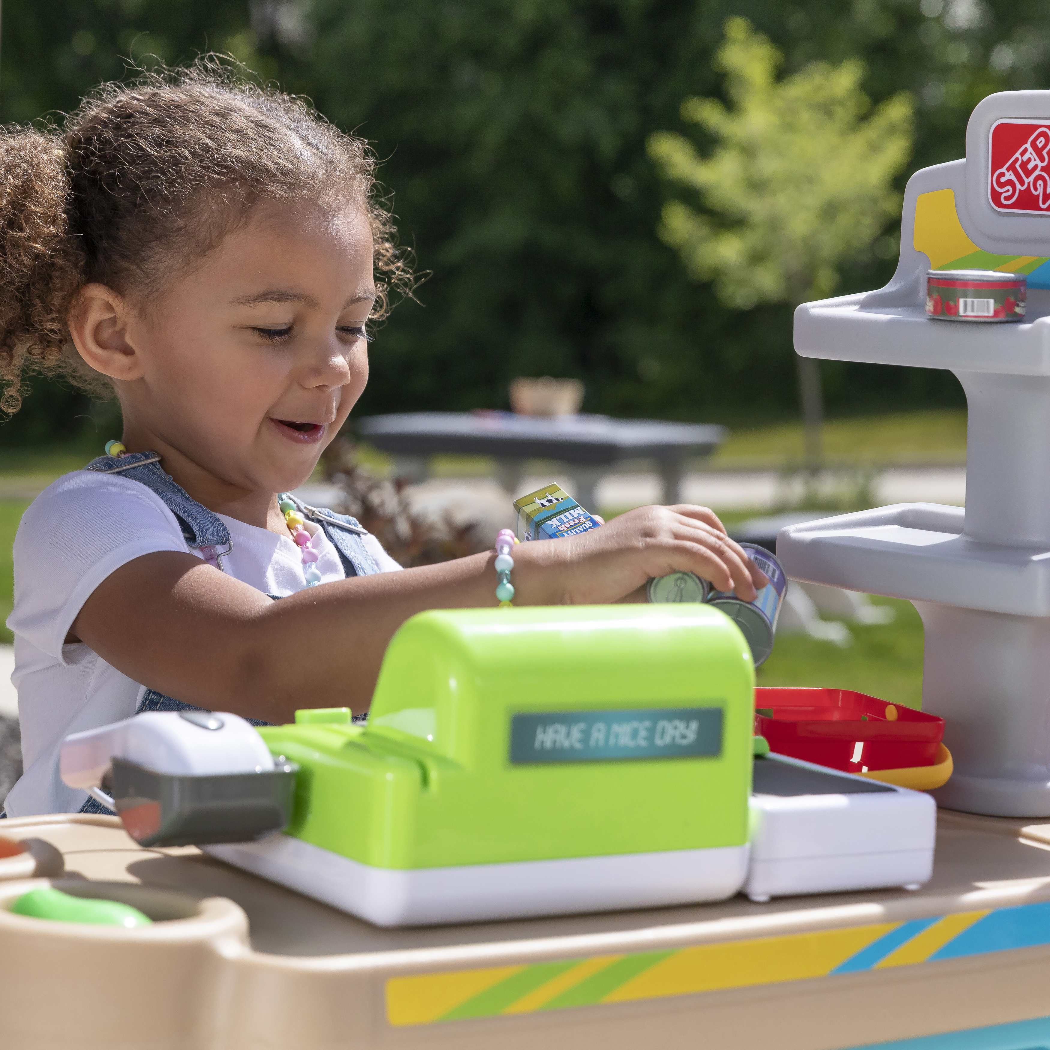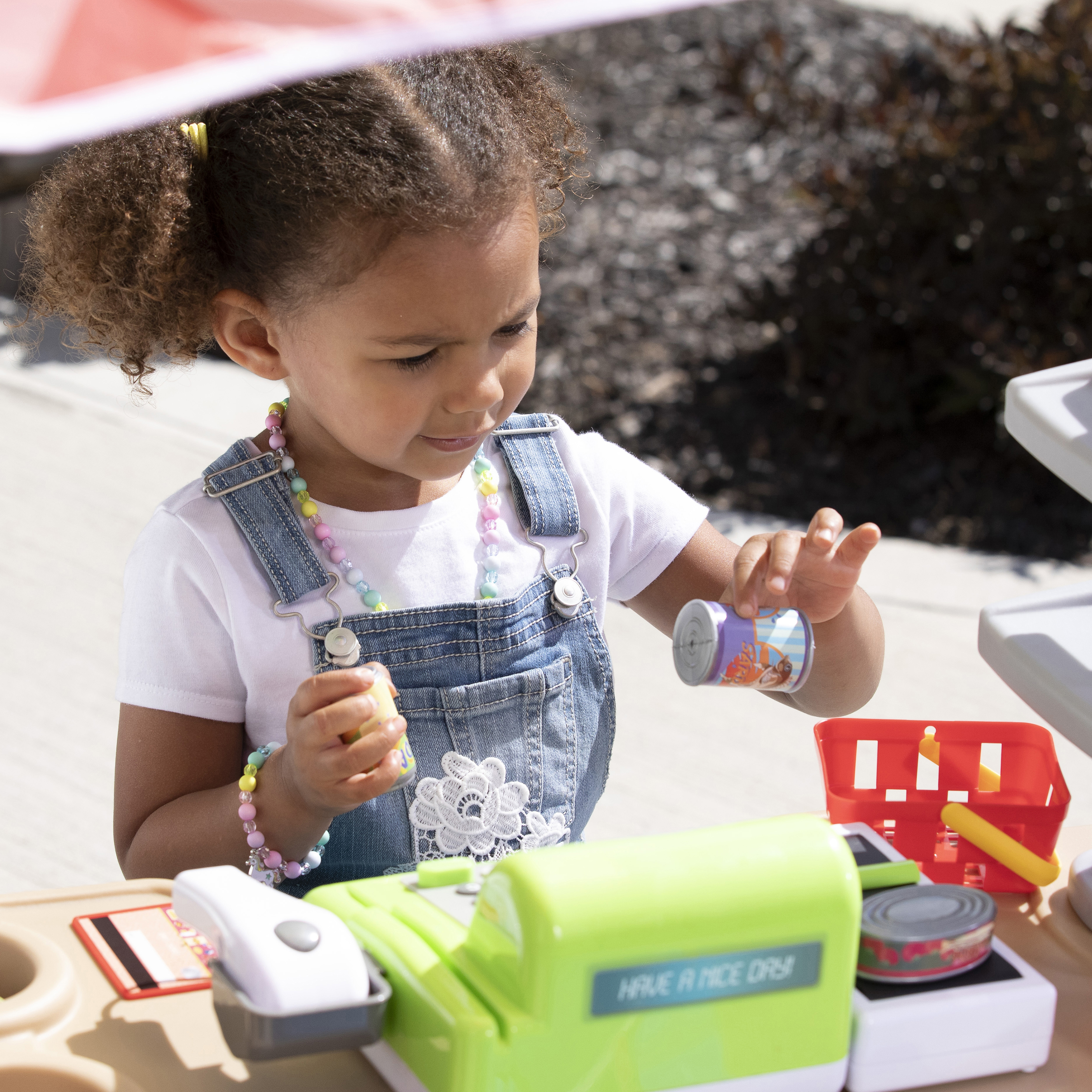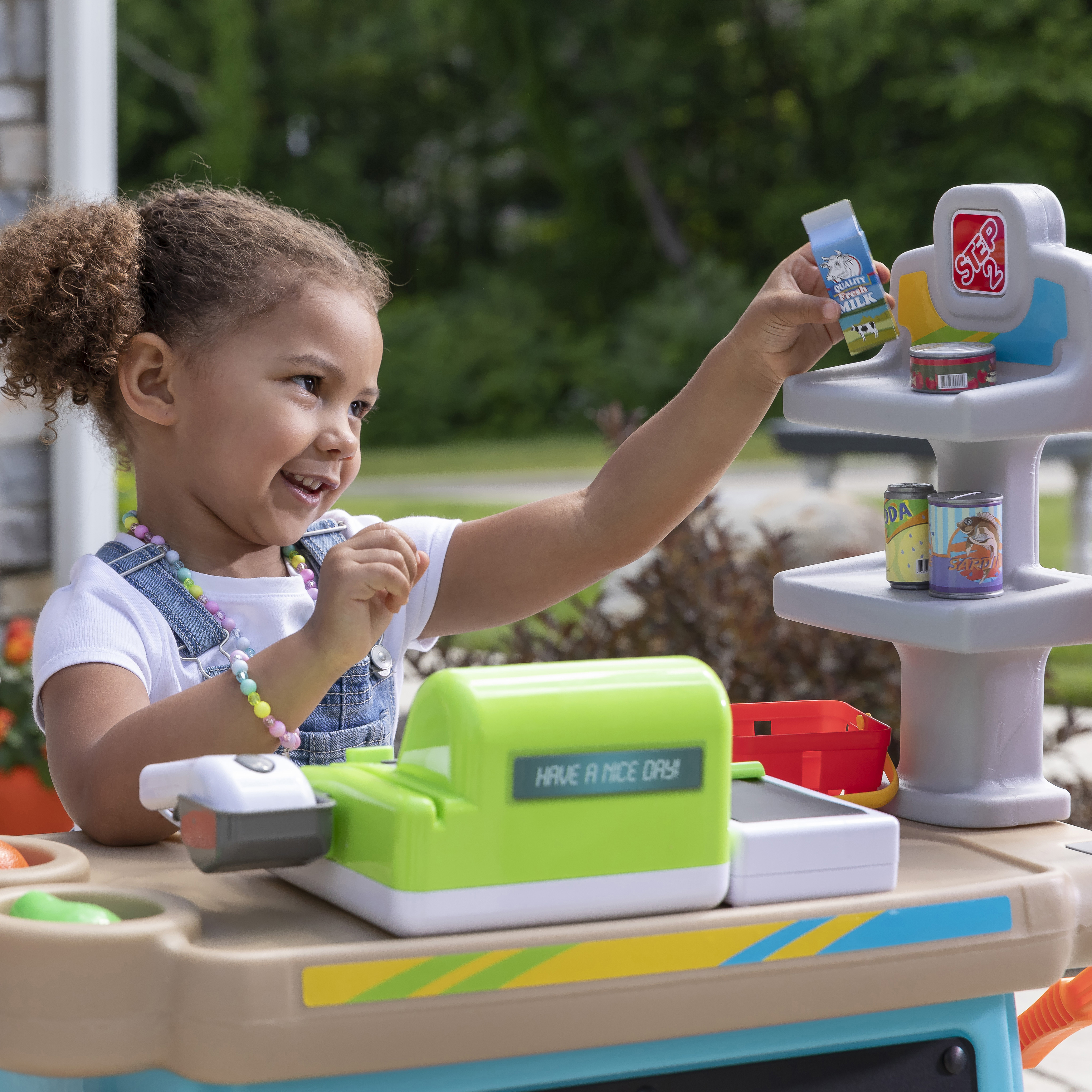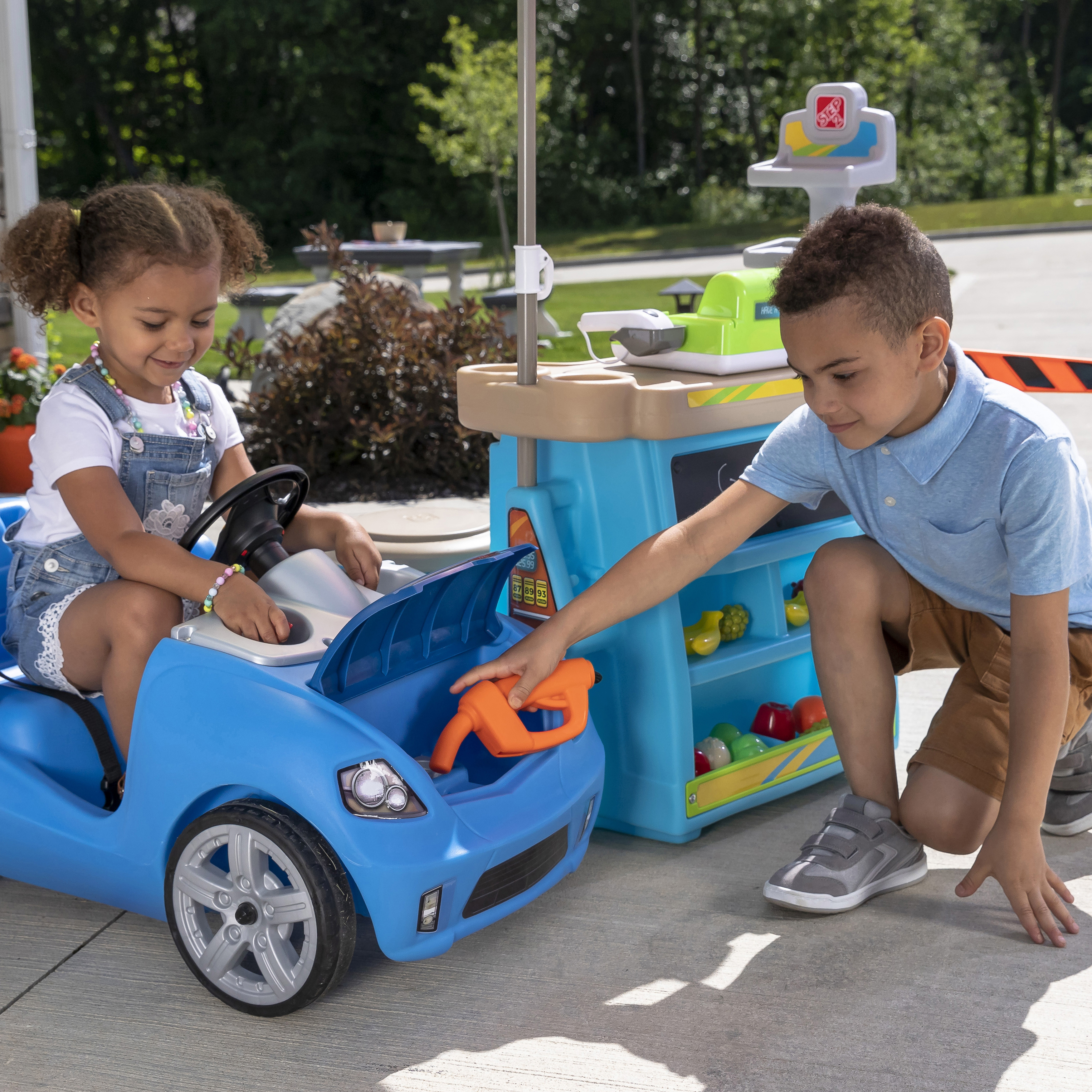 - Eindeloos speelplezier in één stuk speelgoed! Marktkraam, benzinestation en tolhuisje in één.