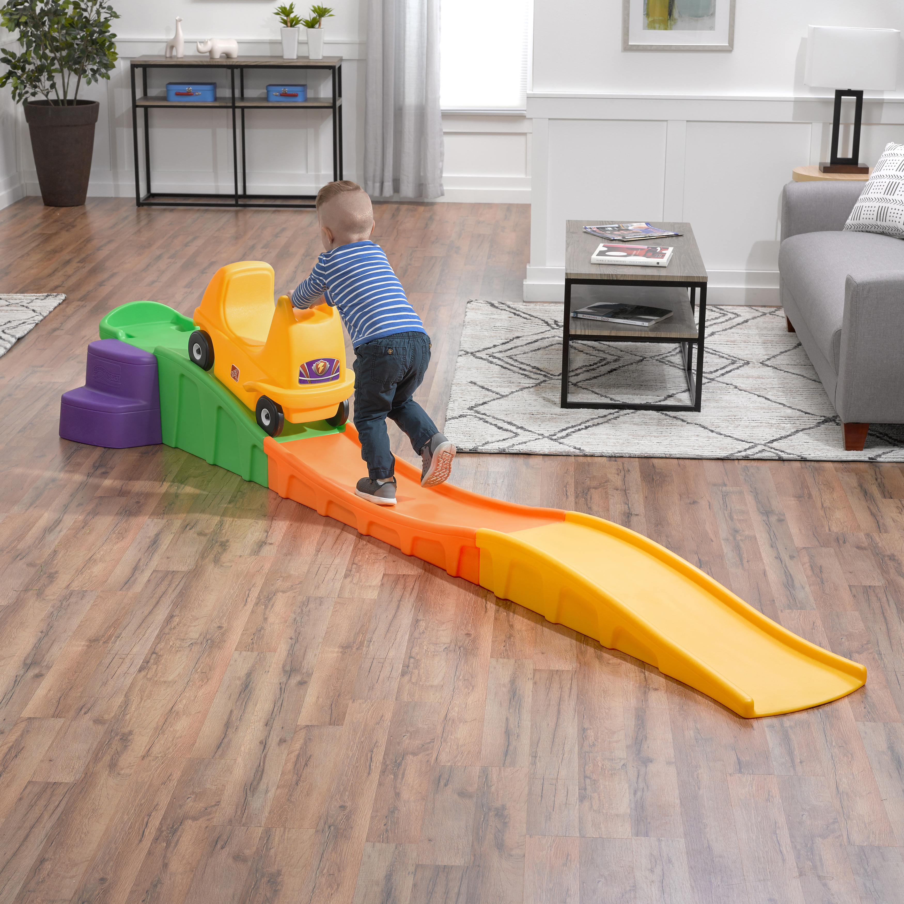 Deze Step2 Up & Down Roller Coaster achtbaan is ontworpen voor duurzaamheid en veel plezier. De wagen geeft peuters en kleuters een kick wanneer ze over de achtbaan rollen! Door het karretje terug te duwen naar de top van de helling, wordt evenwicht, coördinatie en grove motoriek ontwikkeld, terwijl de verzonken wielkuipen het karretje stil houden totdat peuters klaar zijn voor een volgende rit. Deze kleurrijke achtbaan is een geweldige aanvulling voor elke tuin of grote speelkamer.